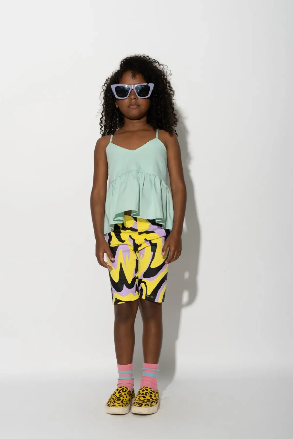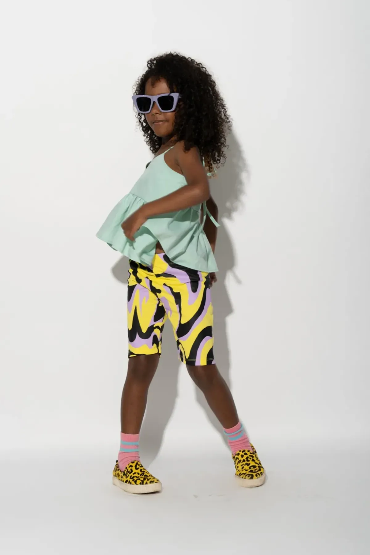 Playfully pedal your kids way through the day in these dark wavy print biker shorts, featuring a jersey fabric and an elastic waistband for maximum comfort and style!