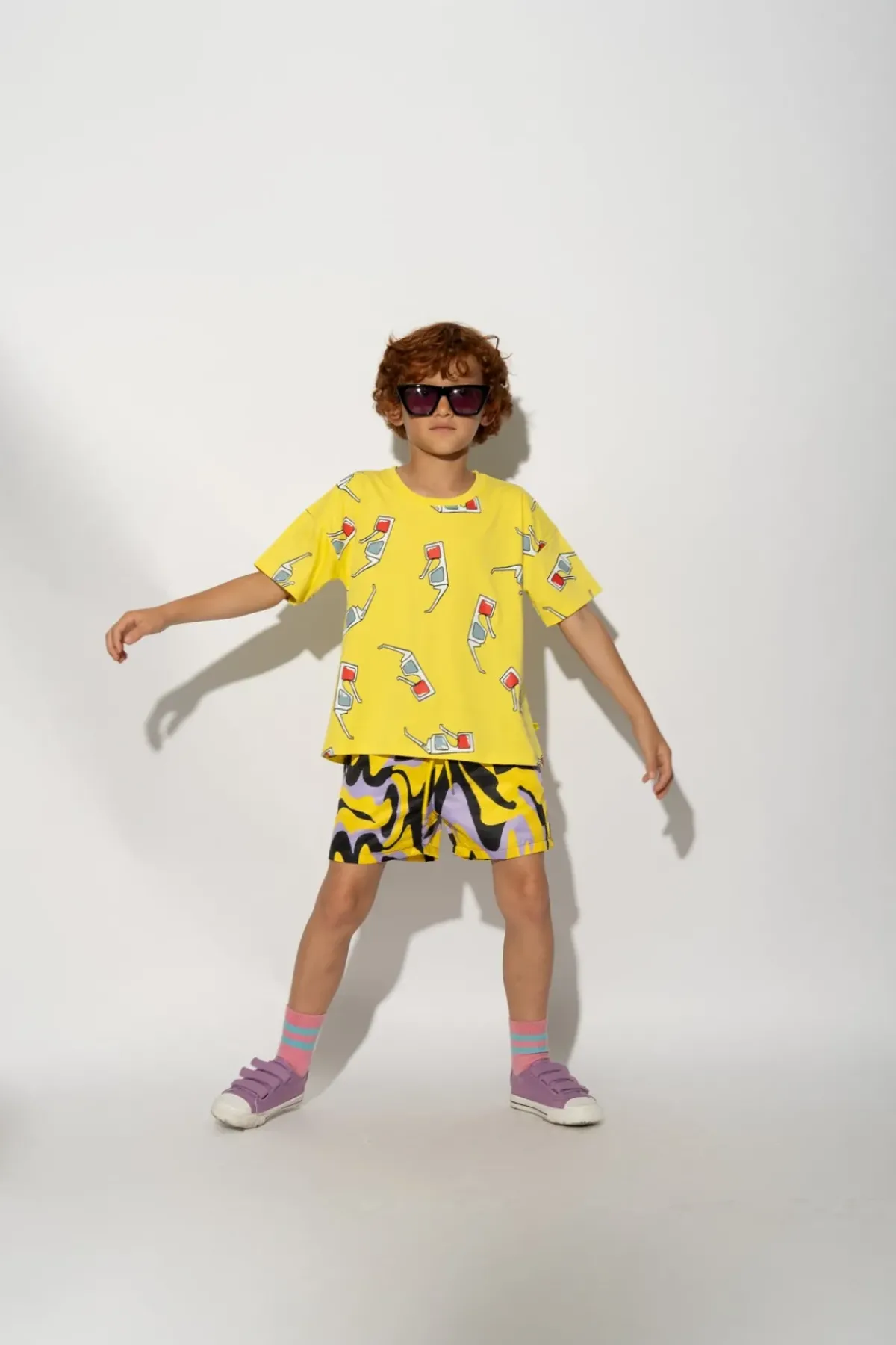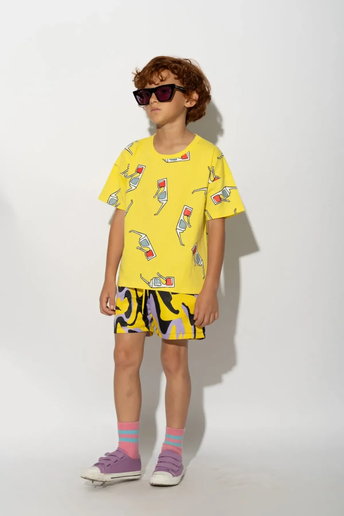 Make a splash in these playful dark wavy print swimwear shorts, featuring a comfy elastic waistband – perfect for getting your kid on!