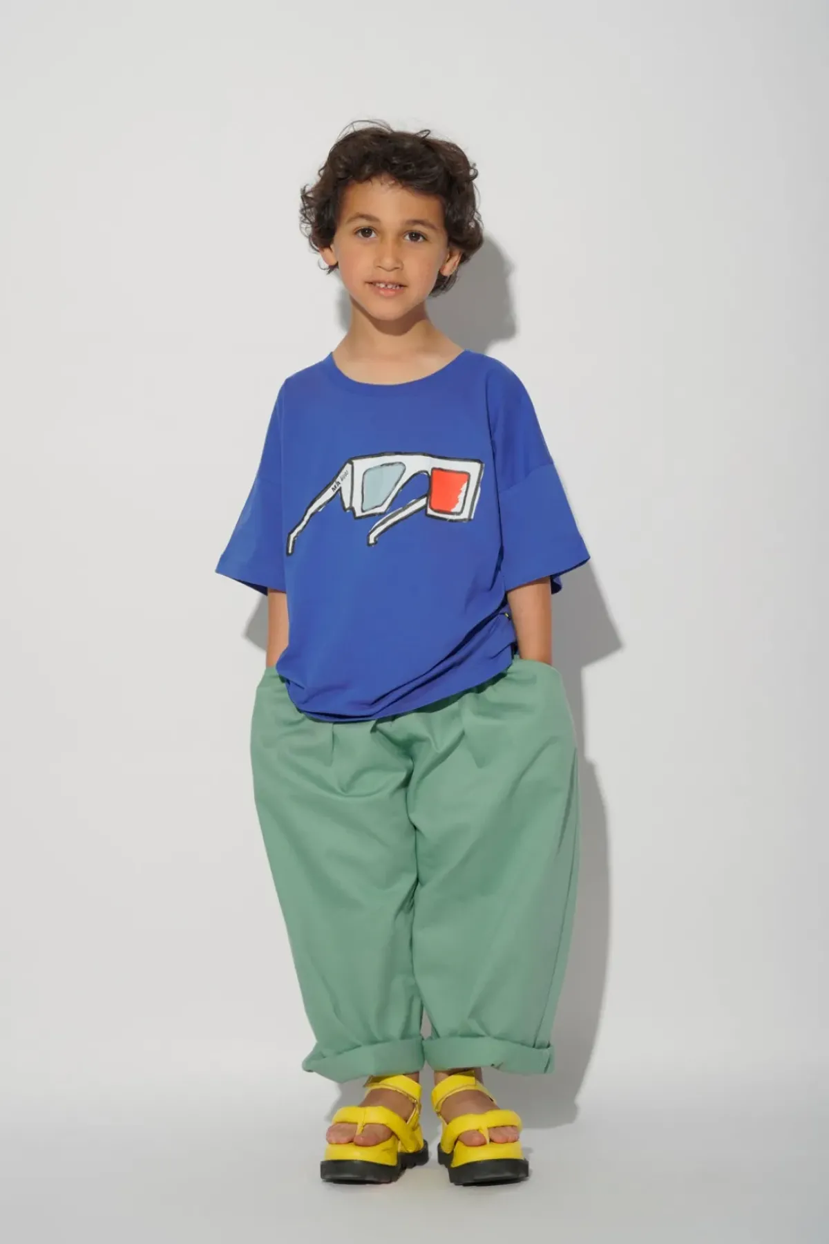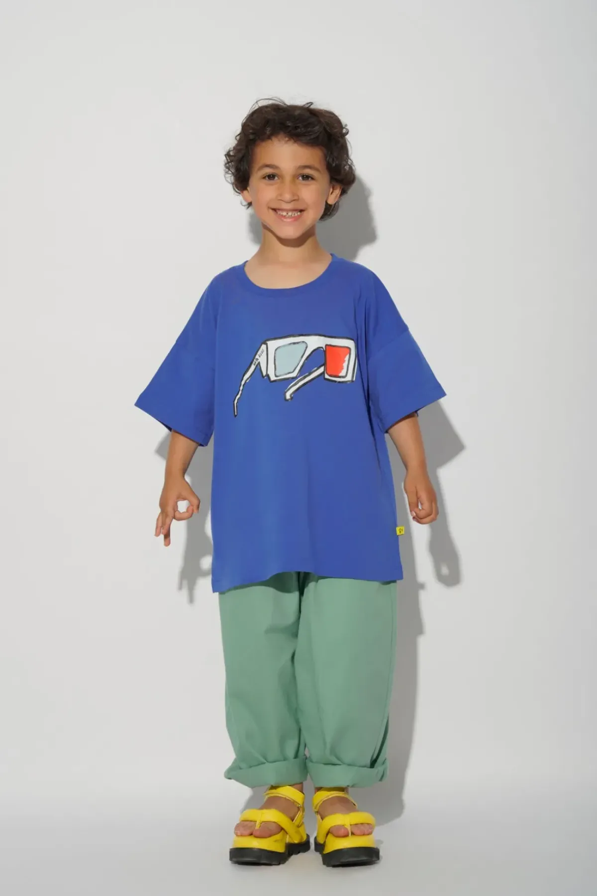 Get ready to rock your kid's wardrobe with this cool navy jersey t-shirt featuring an eye-catching glasses print in 3D, short sleeves and a round neck, this T-shirt is perfect for adding a touch of fun and personality to any outfit.