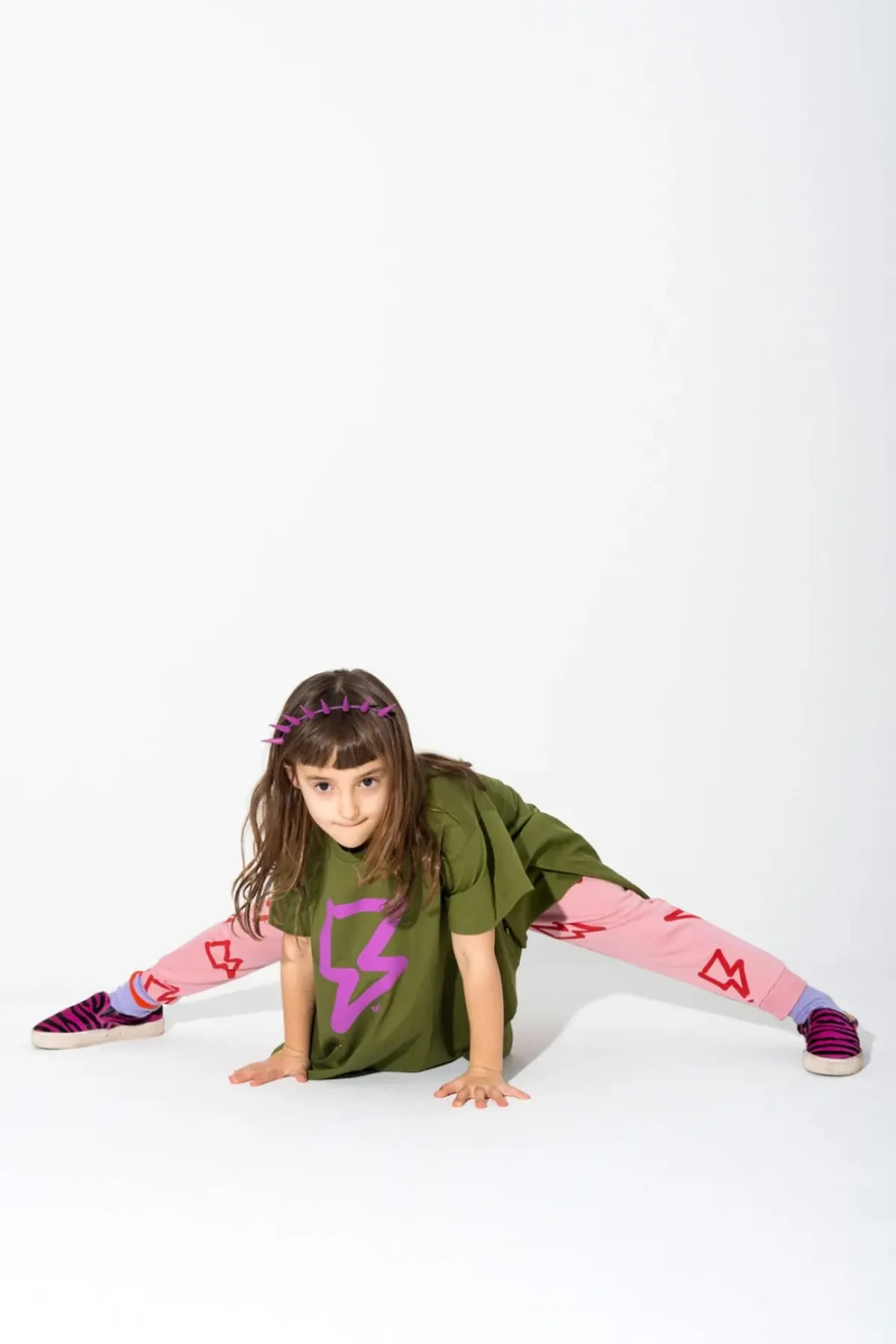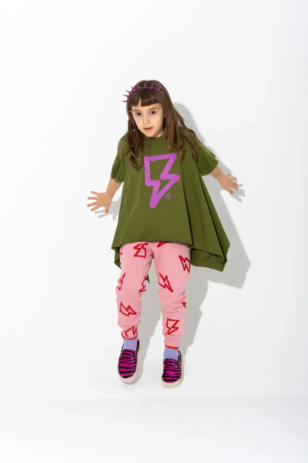 Pink fleece runners with a bold 'n' brilliant thunder print and snug-fit elastic waist and cuffs.