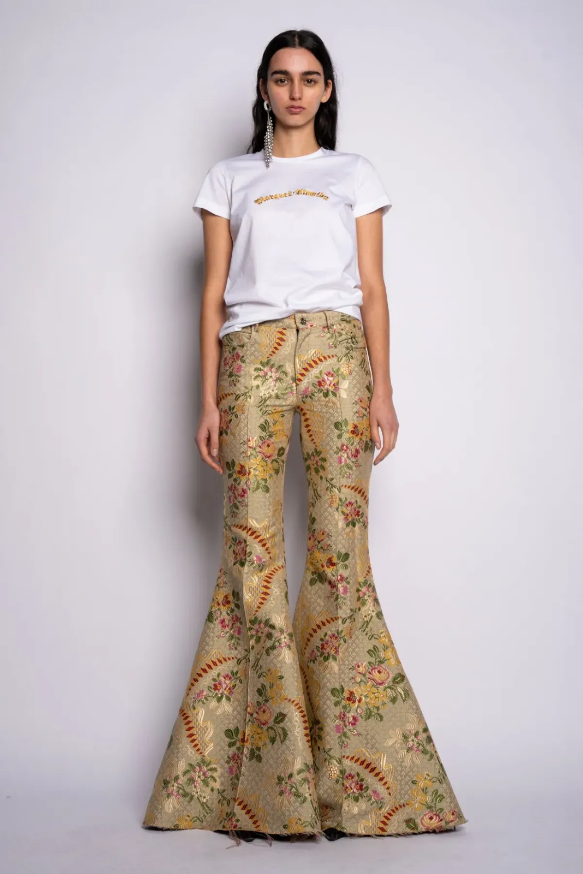 Crafted in white jersey, this t-shirt features the iconic Marques'Almeida logo embroidered in eye-catching gold. Make a statement and showcase your love for style with this trendy and luxurious top!