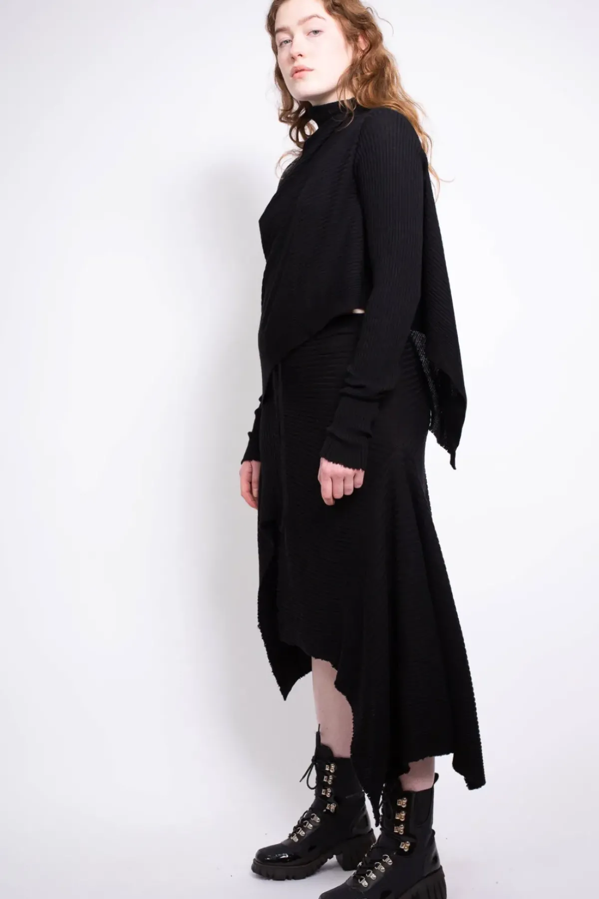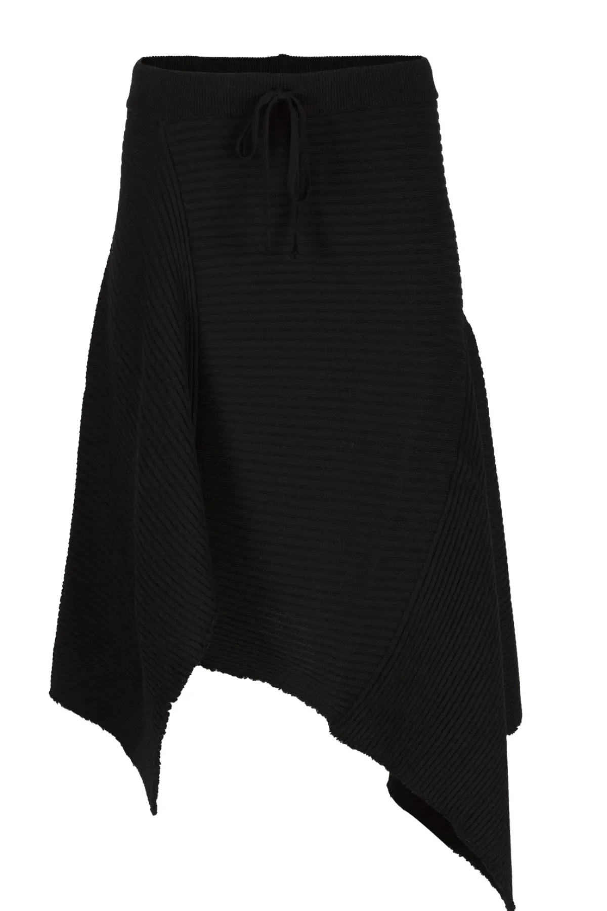 Ooze style and sophistication in this dazzling black wool skirt, featuring a drawstring-cinched waistband and an asymmetric silhouette – perfect for a cool, high-waisted look!