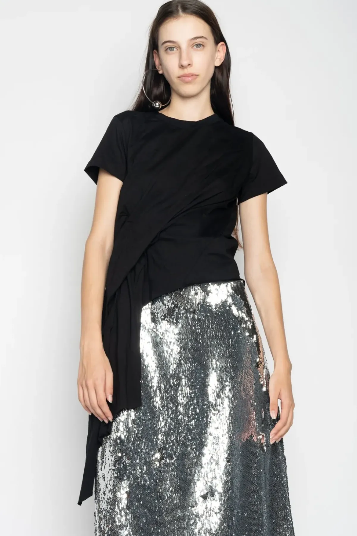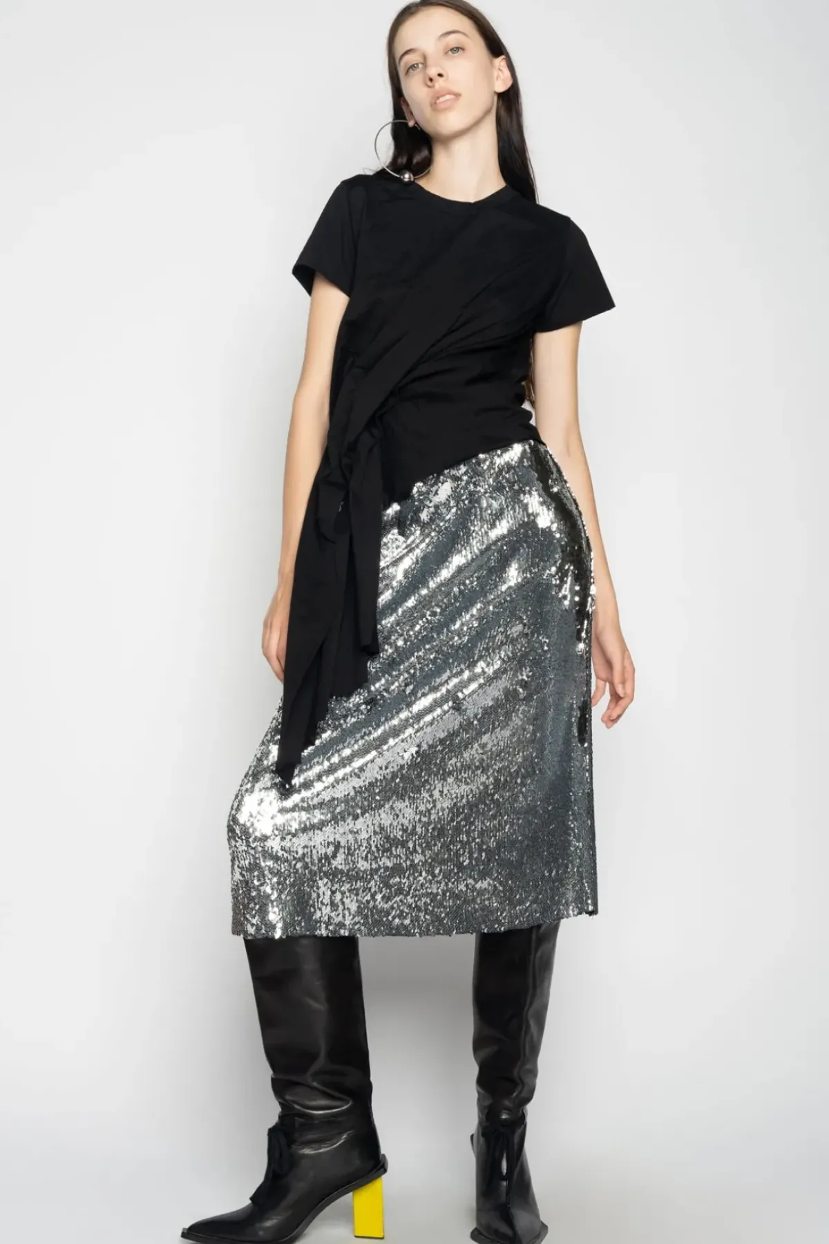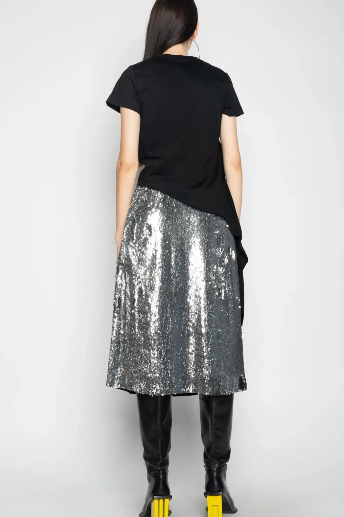 Glistening silver sequins in a midi-length design and cinched with an elastic waistband – this classic skirt is sure to be a staple in your wardrobe!