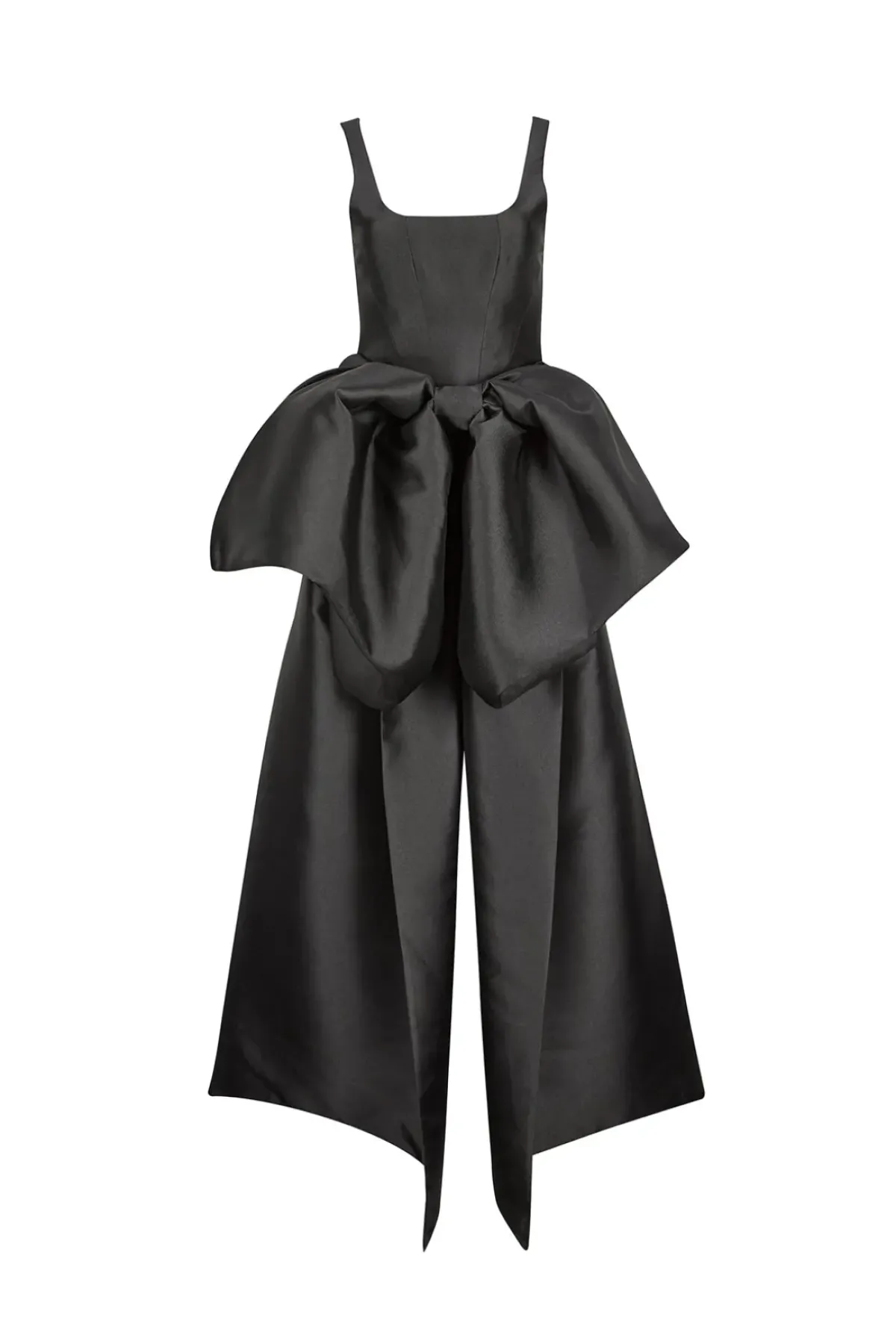 Get ready to make a statement with our black front bow top! This mikado top features a stunning bow in the front, shoulder straps and a back zipper.