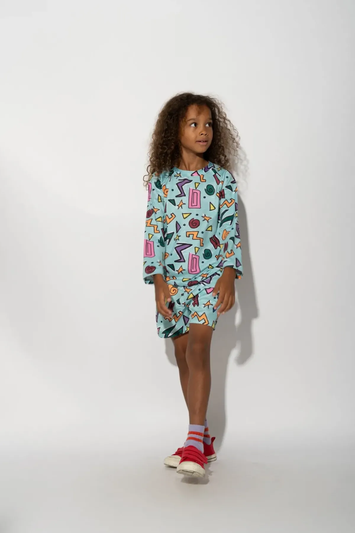 Let your kiddo ride the waves in style with our turquoise squiggle print swim top with long sleeves and a round neckline. It's the perfect way to make a statement while keeping your skin protected (and looking cute, too!).