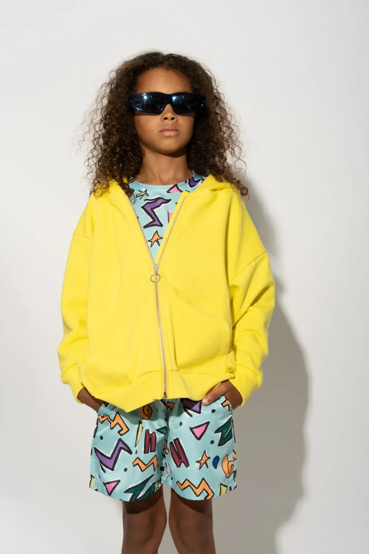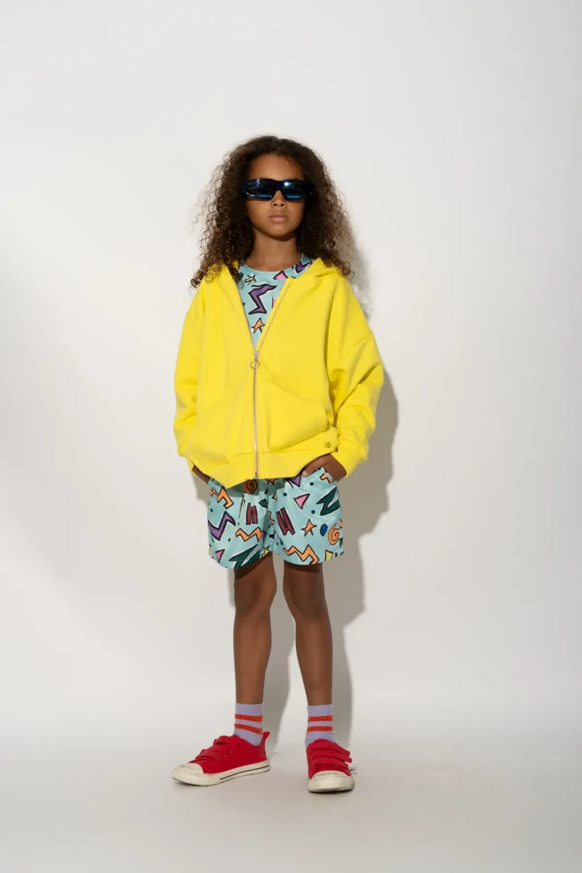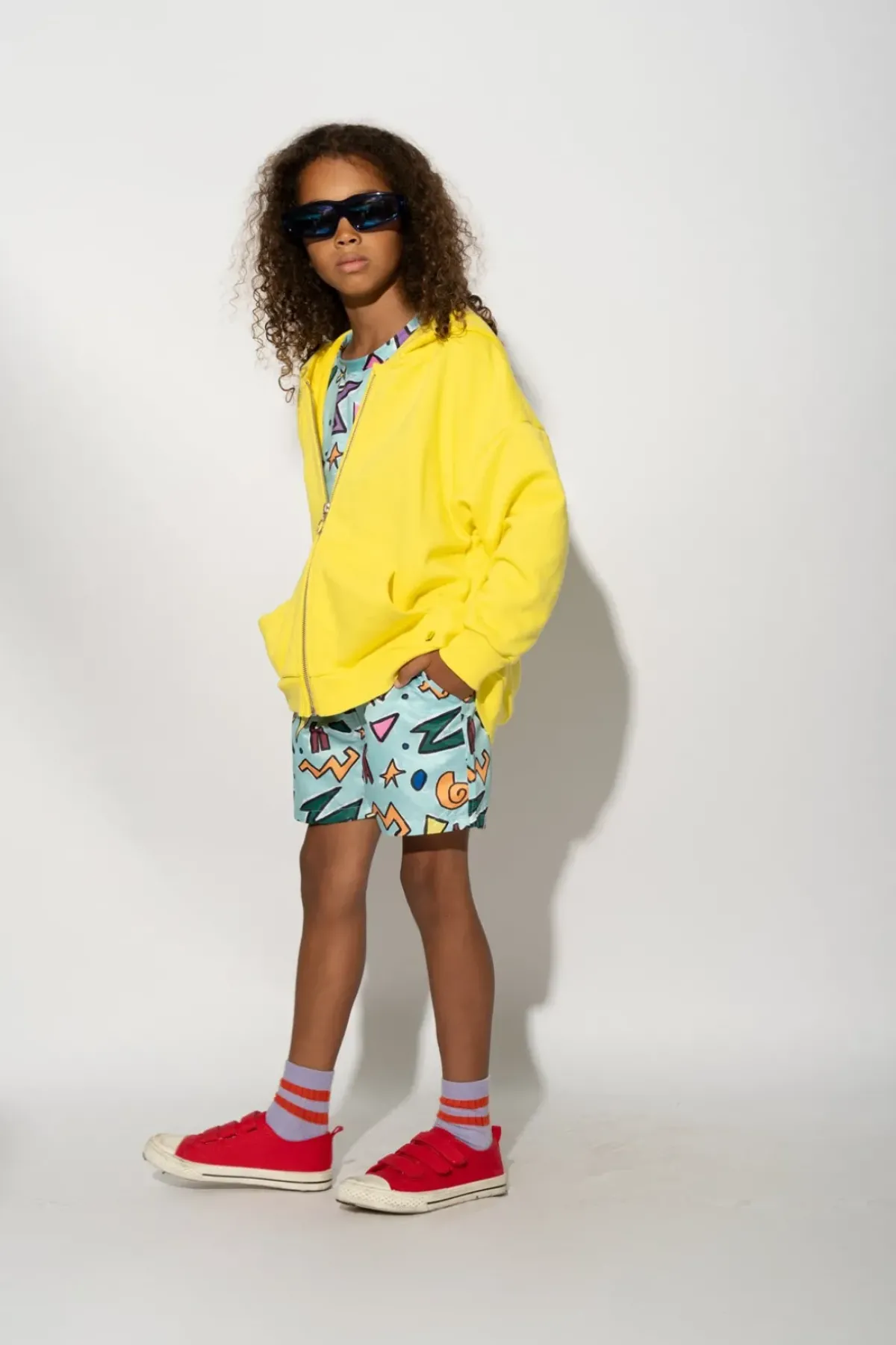 Introducing these playful turquoise print swimwear short shorts, featuring a comfy elastic waistband and a squiggle print – perfect for getting your kid on!