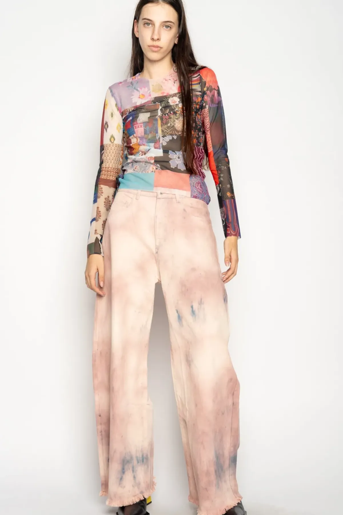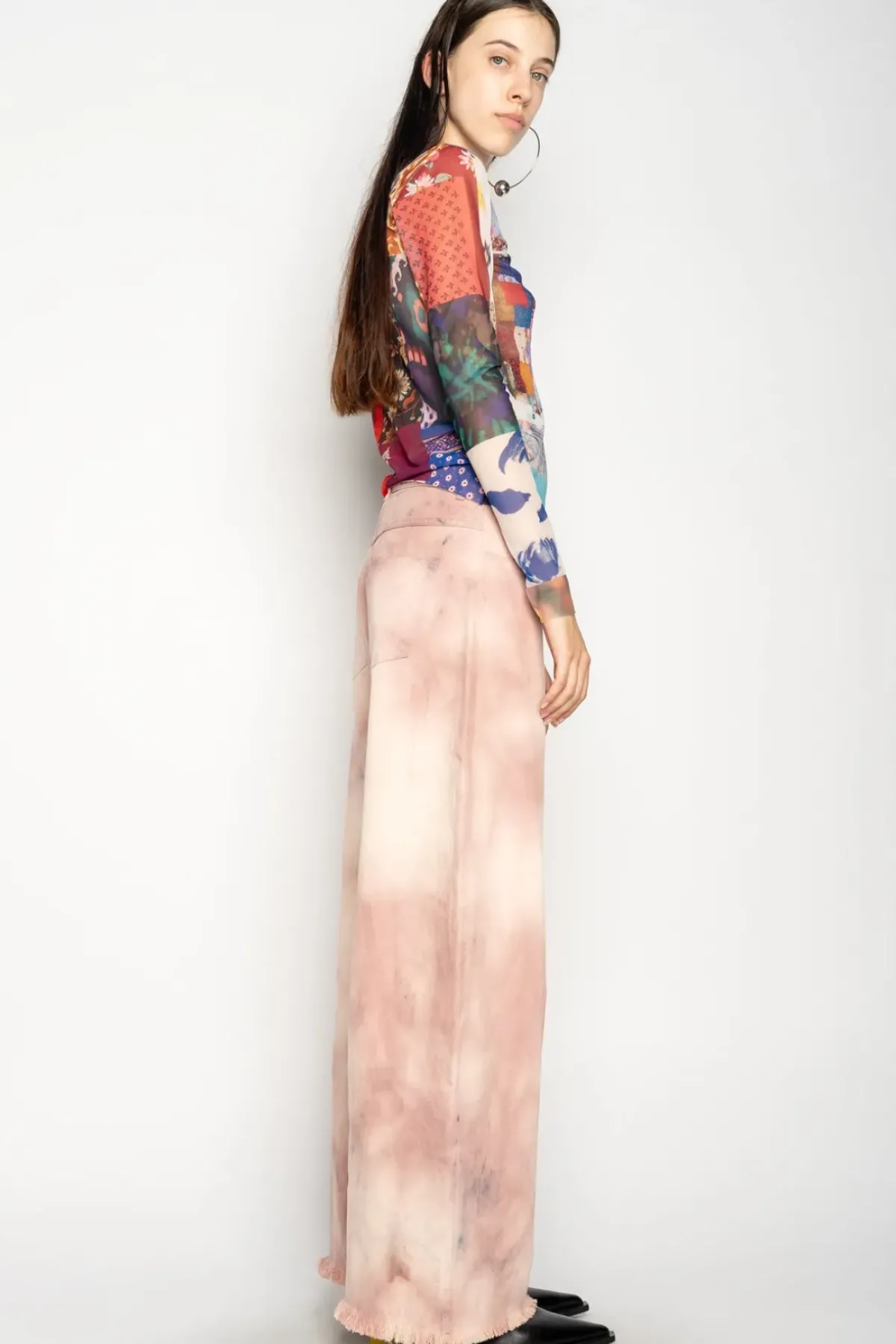Meet our pink tie-dye classic M'A boyfriend jeans with a relaxed fit, wide leg, raw hem, and five pockets. Perfect for a laid-back yet stylish look!
