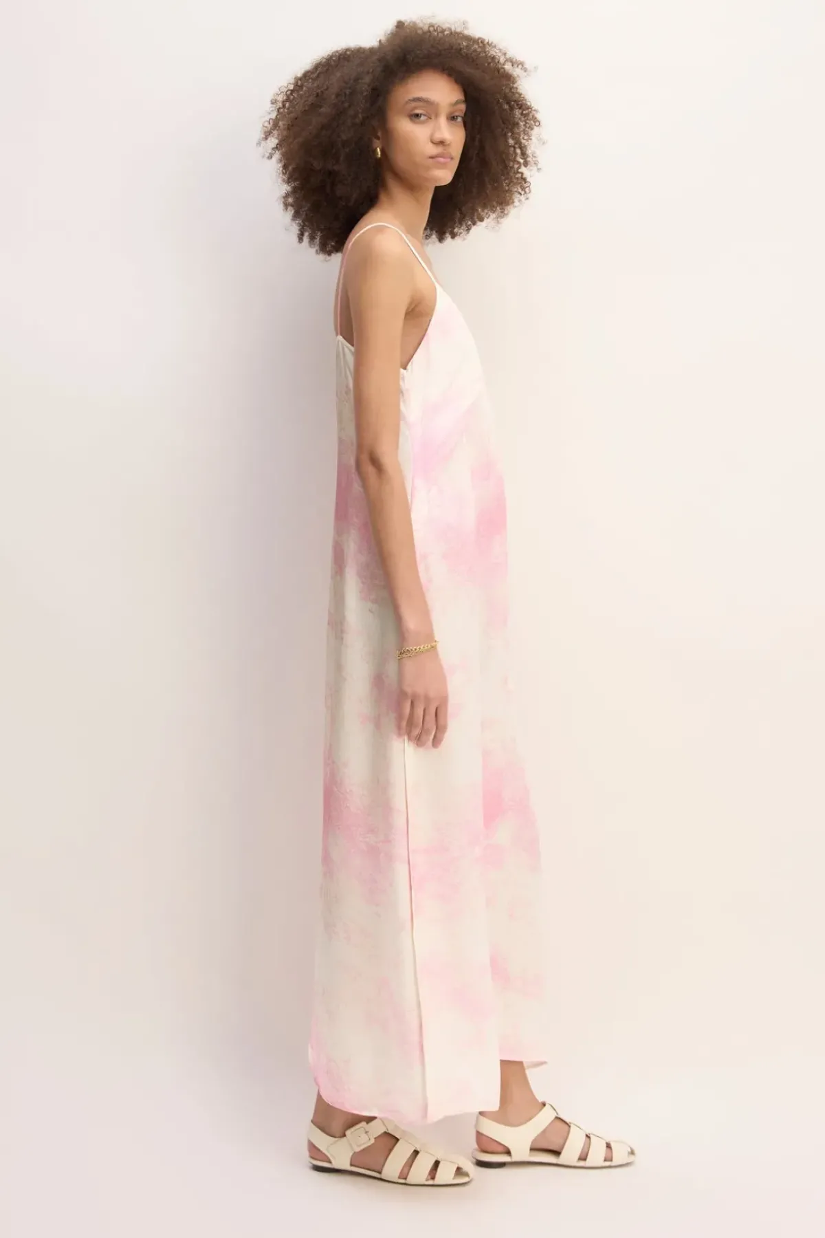 Experience the vibrant allure of our Pink Tie Dye Slip Dress. Made with satin and featuring spaghetti straps, this mid-length dress is sure to make a statement.