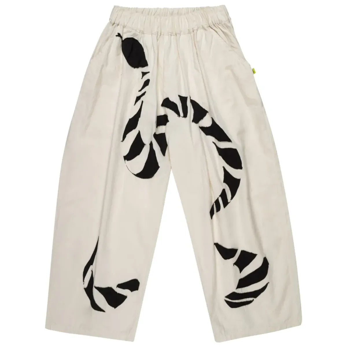 White shirting? More like snazzy snake shirting! These baggy trousers feature a playful snake embroidery on the front, while the balloon fit and elastic waistband add a touch of comfort to your kids' quirky style.