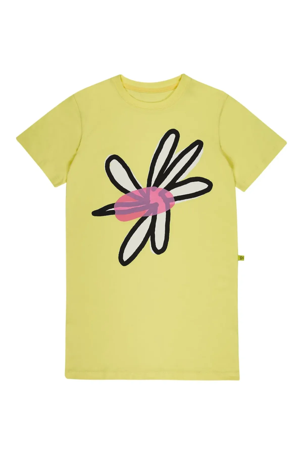 Made of soft, comfortable jersey material in a bright shade of yellow, this dress features short sleeves, a round neck and a relaxed fit. The unique daisy print on the front adds a playful touch to any young fashionista's wardrobe.