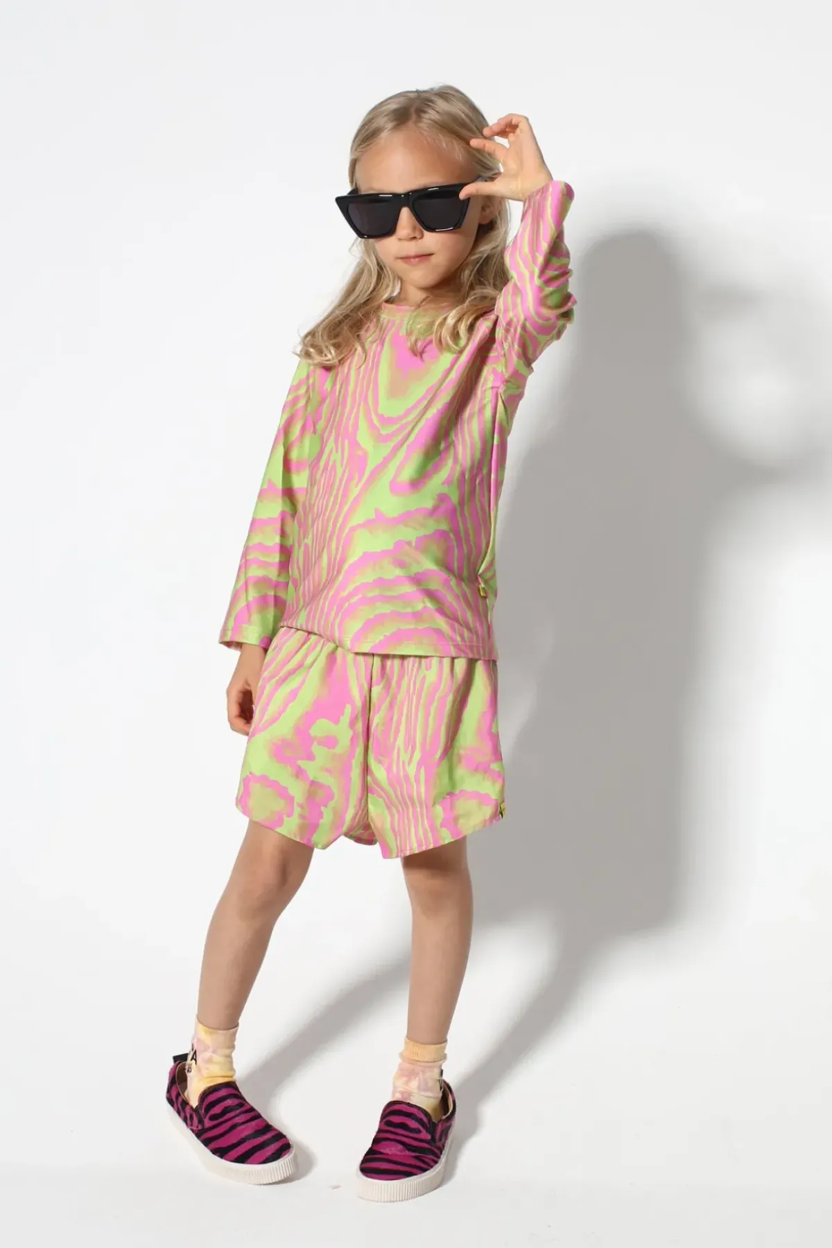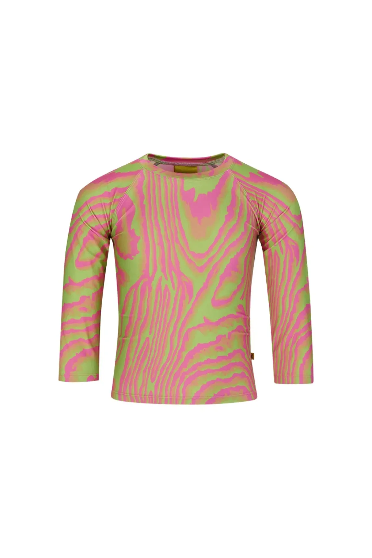 Rockin' swimwear top in green 'n' pink, printed with long sleeves and an elastic round neckline – perfect for kiddos!