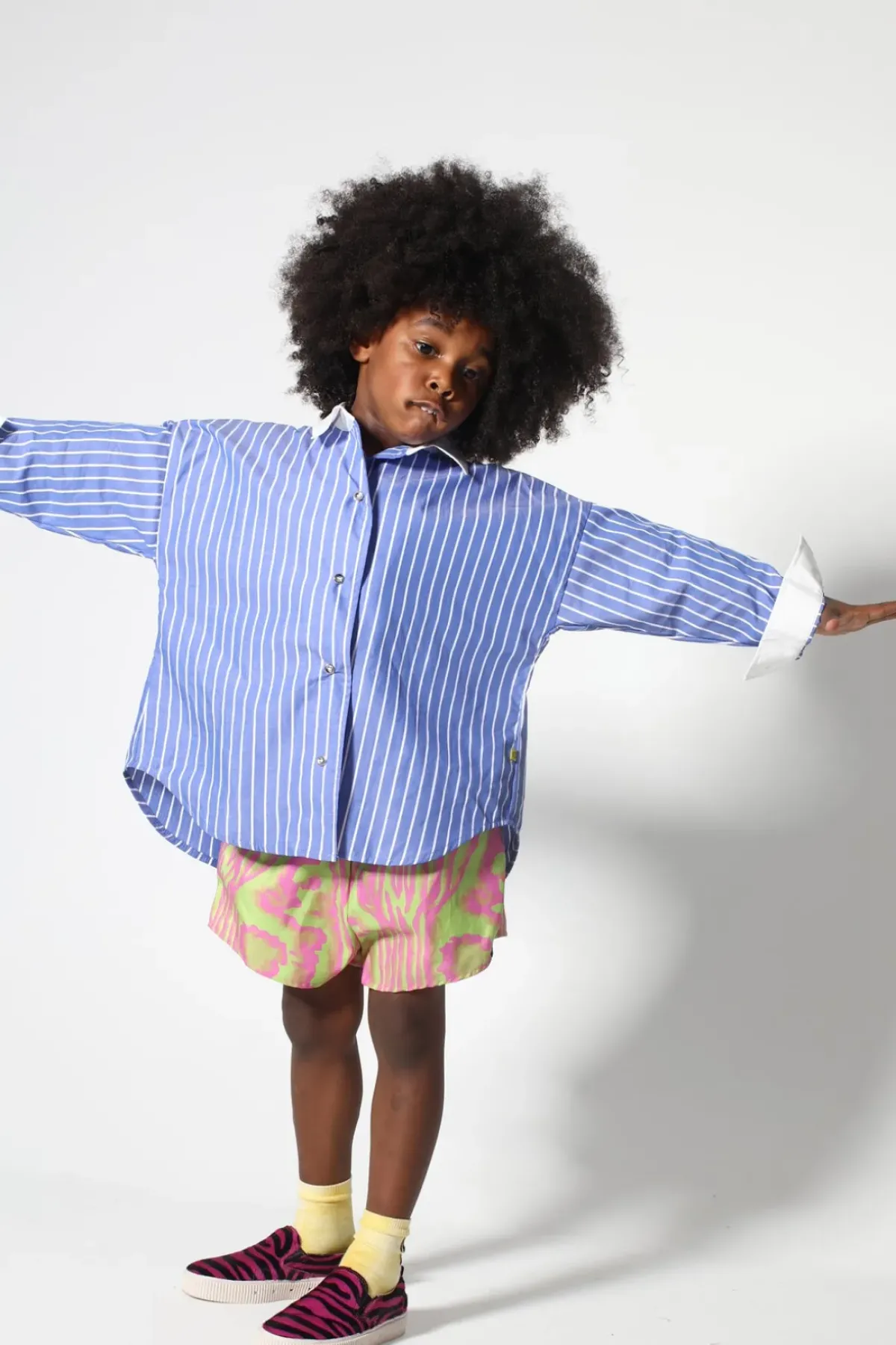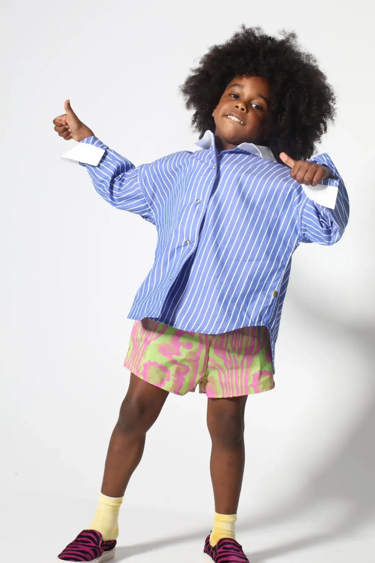 Make a splash in these playful pink and green print swimwear shorts, featuring a comfy elastic waistband – perfect for getting your kid on!