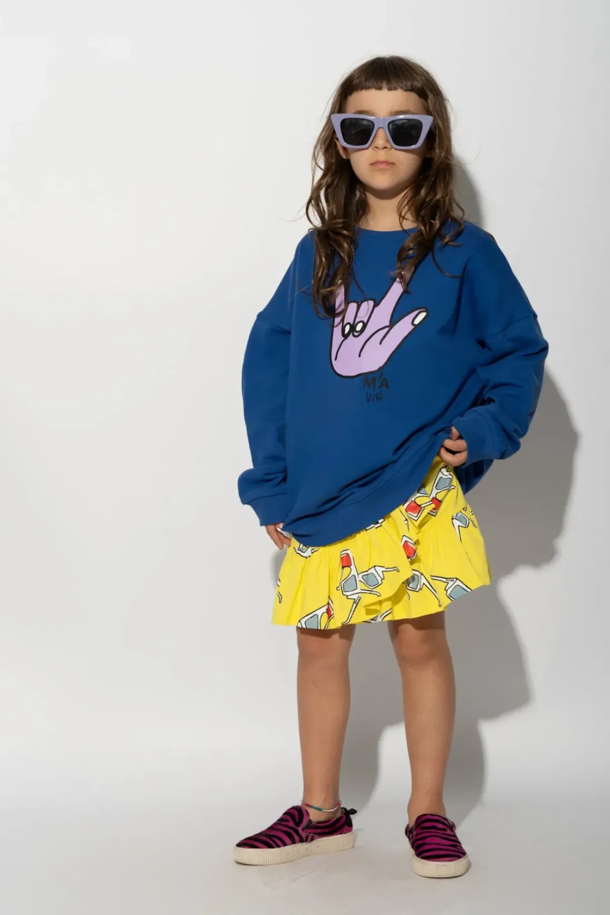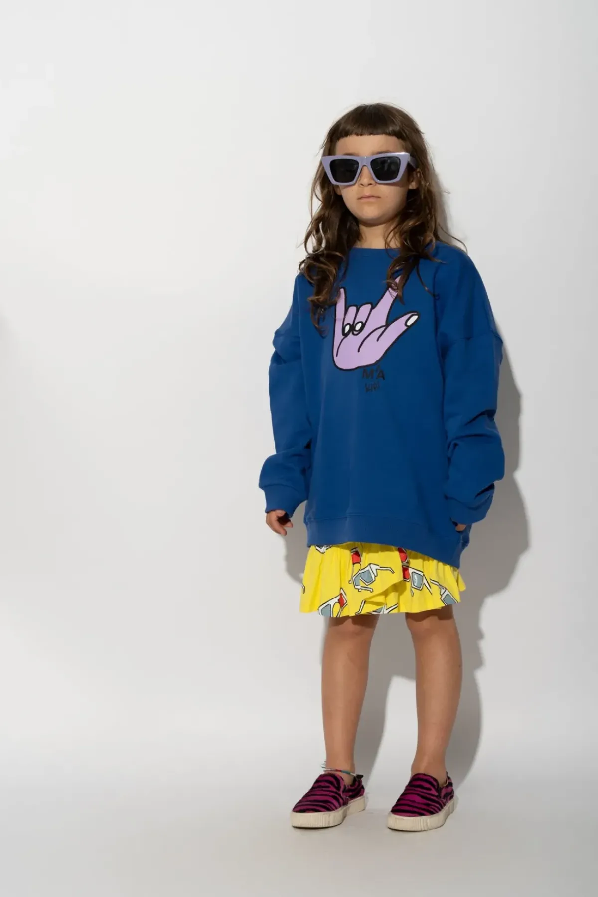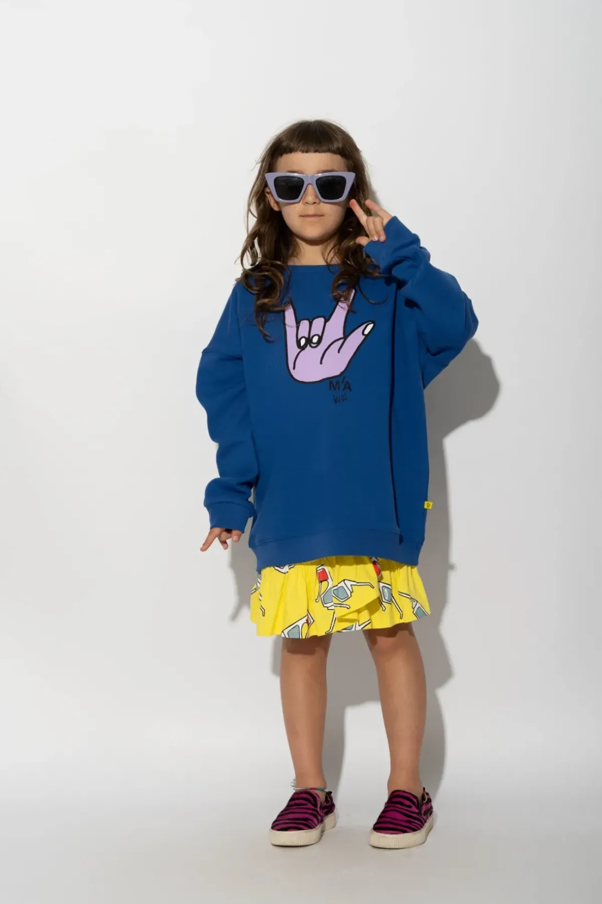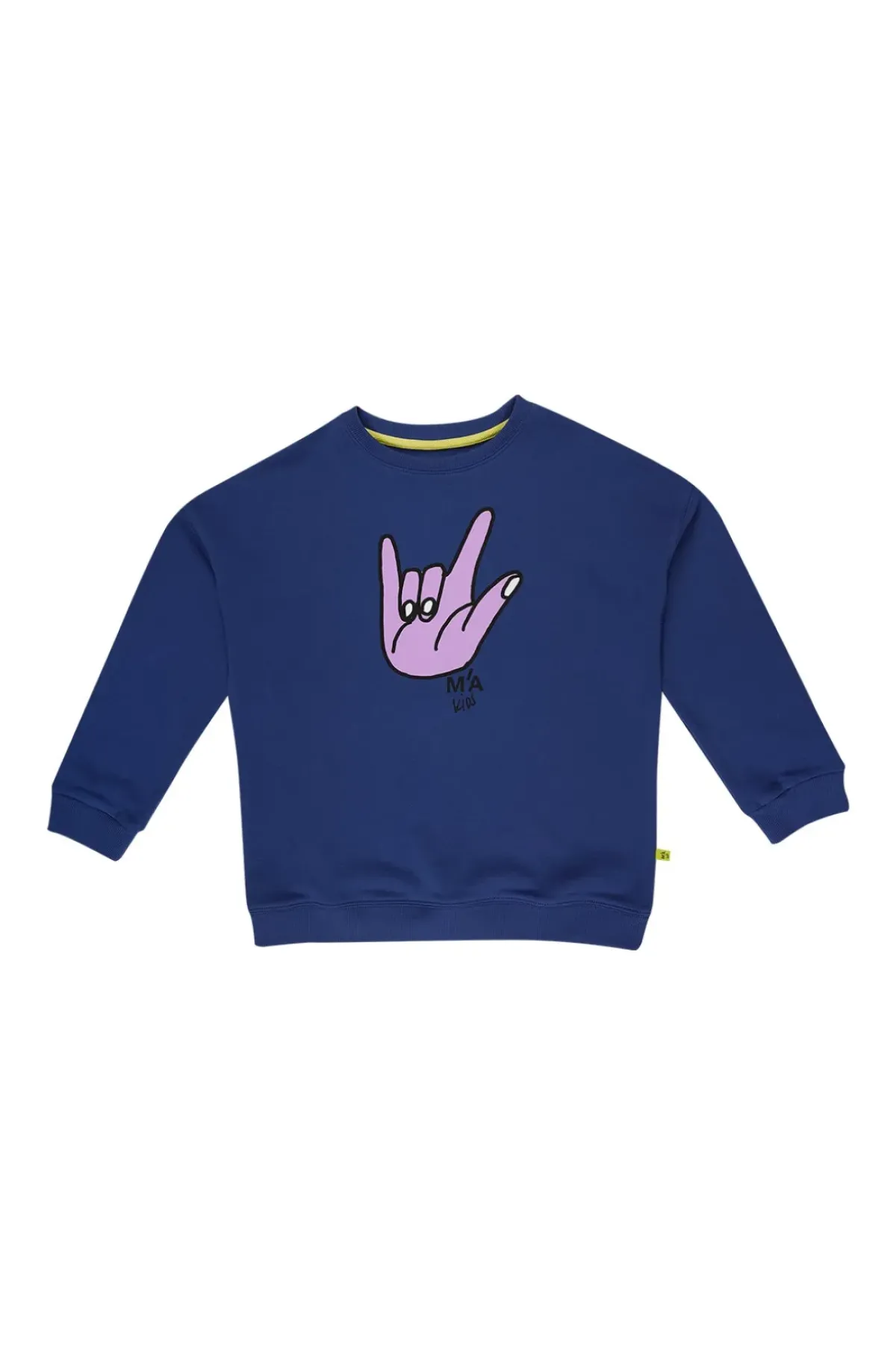 Cozy and cute, this blue crew neck sweatshirt with a hand print is perfect for your little one! Featuring soft fleece cloth, ribbed neck and cuffs and a flattering hem.