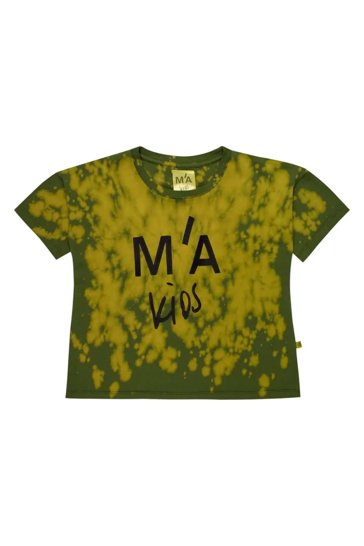 Rock a look with this khaki and orange splattered jersey tee. Embroidered with a bold logo and designed with a round neck, this t-shirt is sure to make a splash!