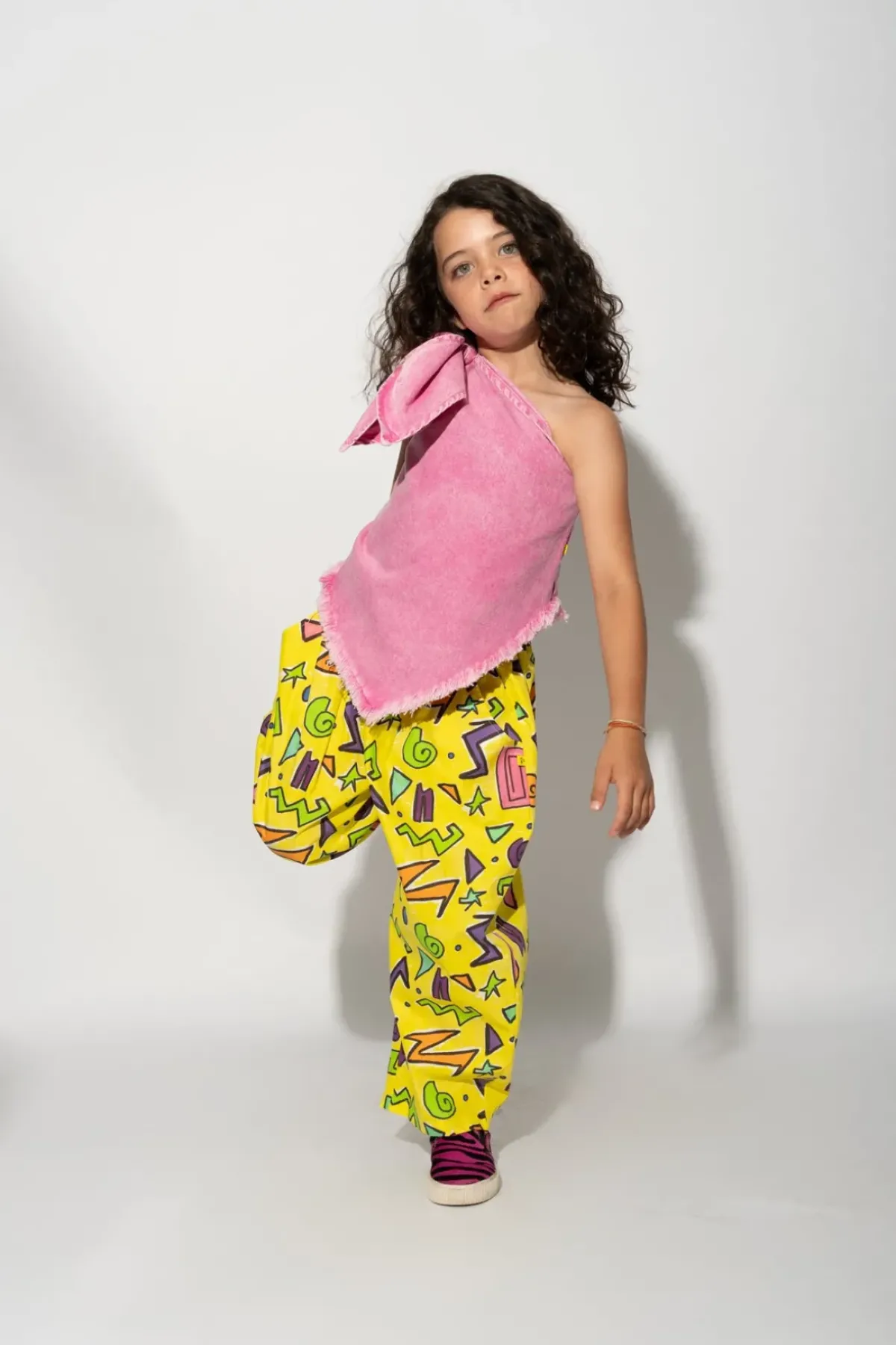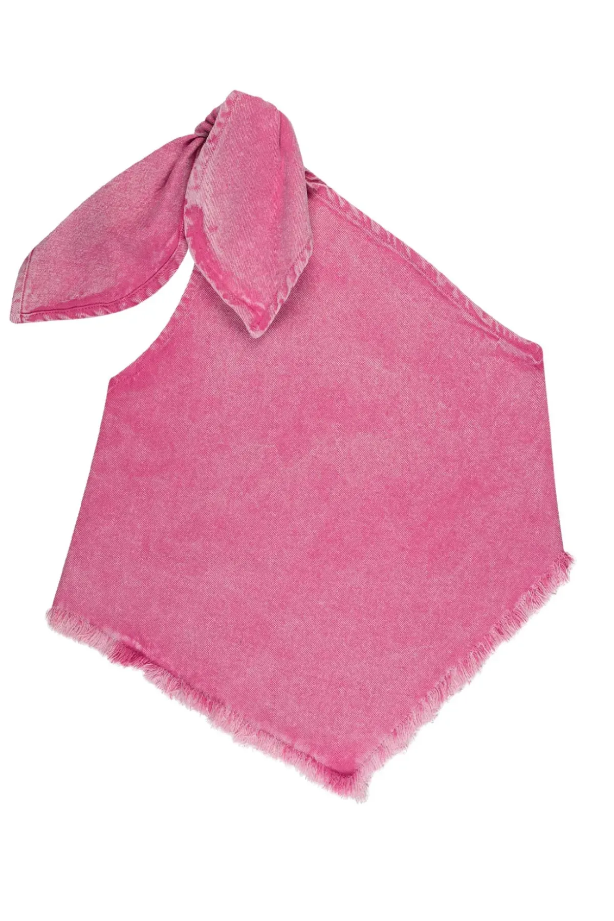 A playful twist on the classic denim look, this top features a unique fade out pink denim and a cute knot on the strap. The asymmetric and frayed hem adds a touch of quirkiness.