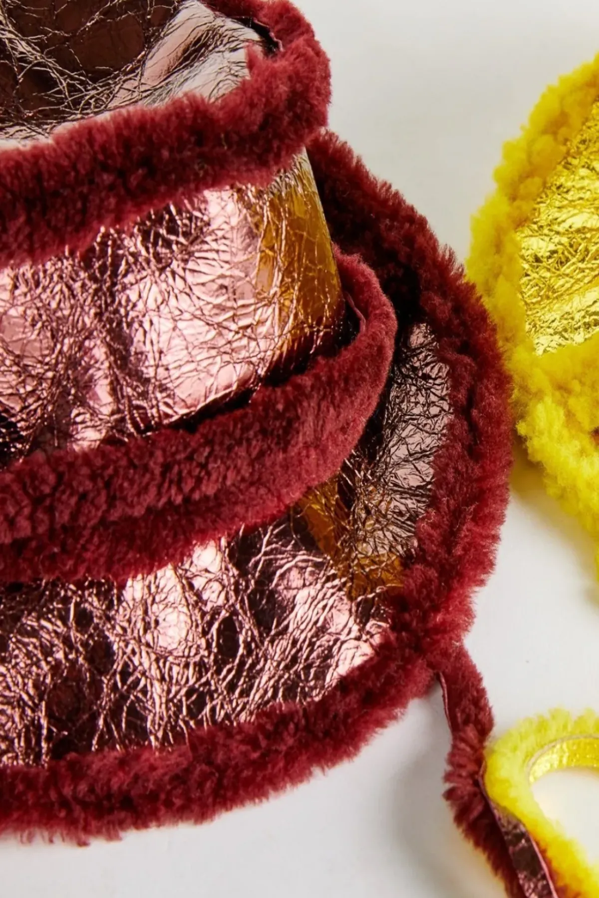 Our burgundy leather bucket hat will add a touch of shine to any look, while the addition of warm wool will keep the kids cozy!