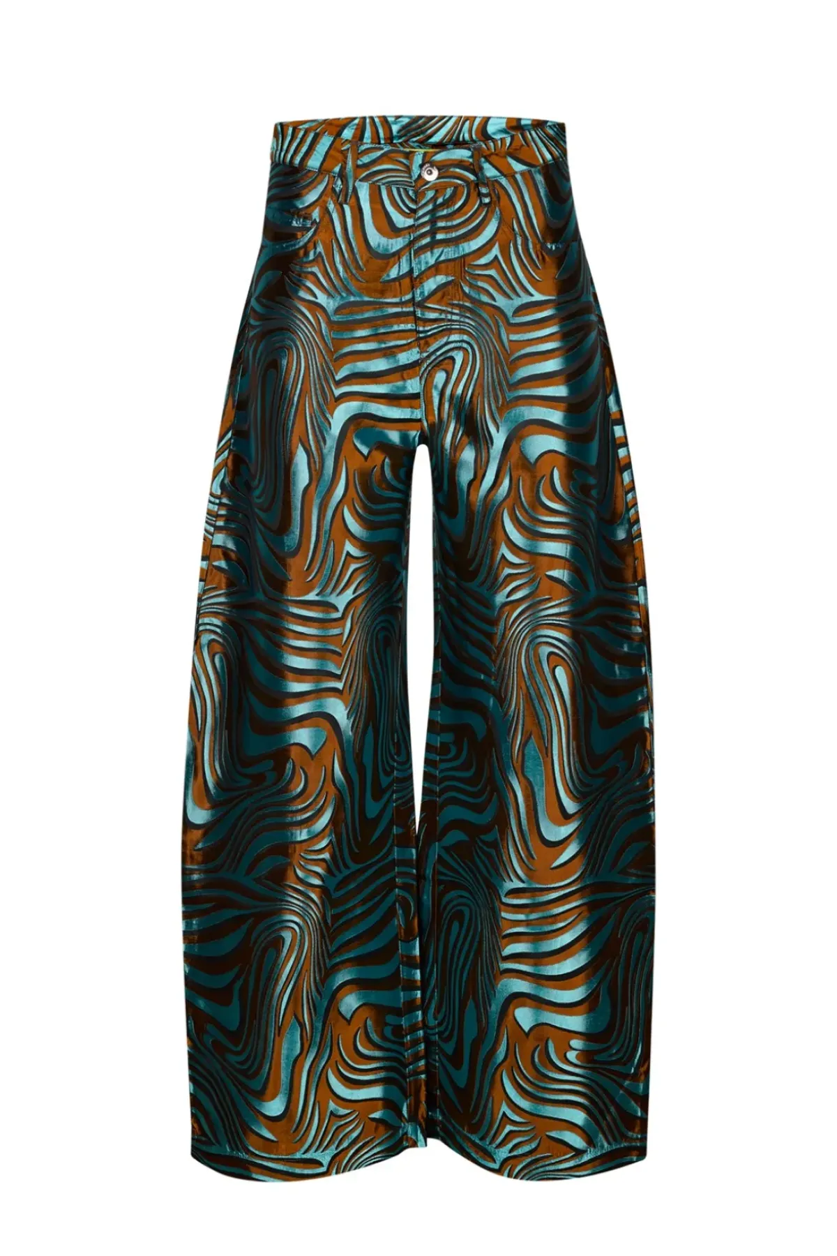 Blue zebra brocade trousers feature a relaxed silhouette, five pockets and wide legs!
