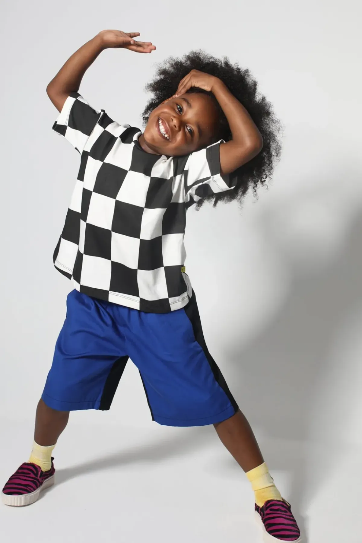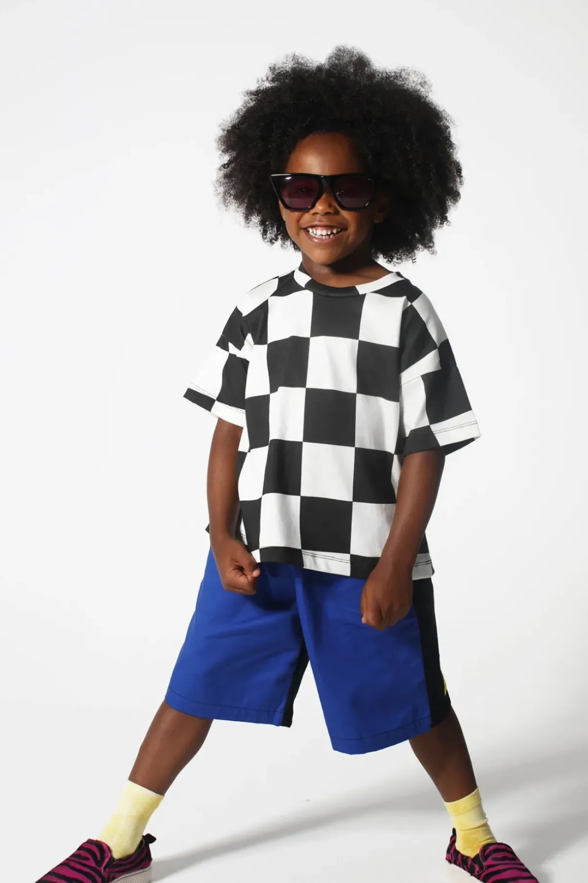 Rock this rad t-shirt featuring a classic black & white check pattern, comfy short sleeves, and a chill crew neck! Just the thing to upgrade your kiddo's style game.