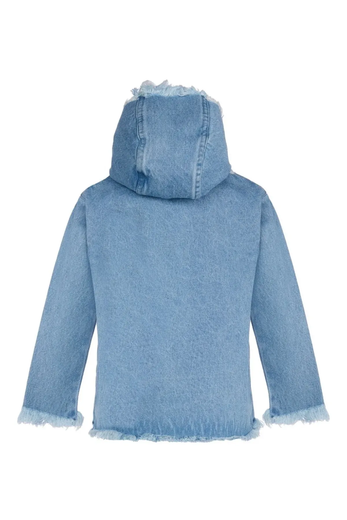 Wrap your little one up in cozy style with this blue denim hoodie finished with raw hemlines for a timeless look.