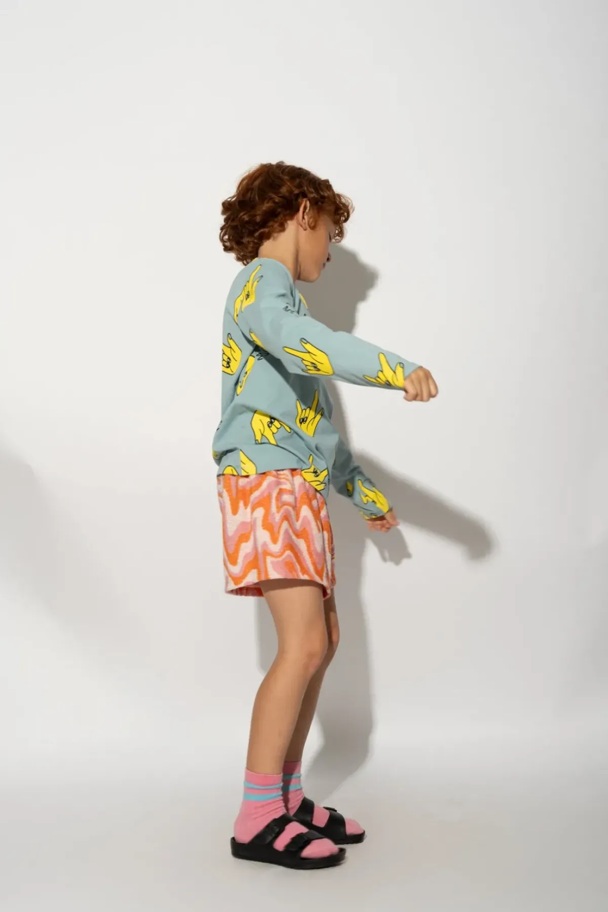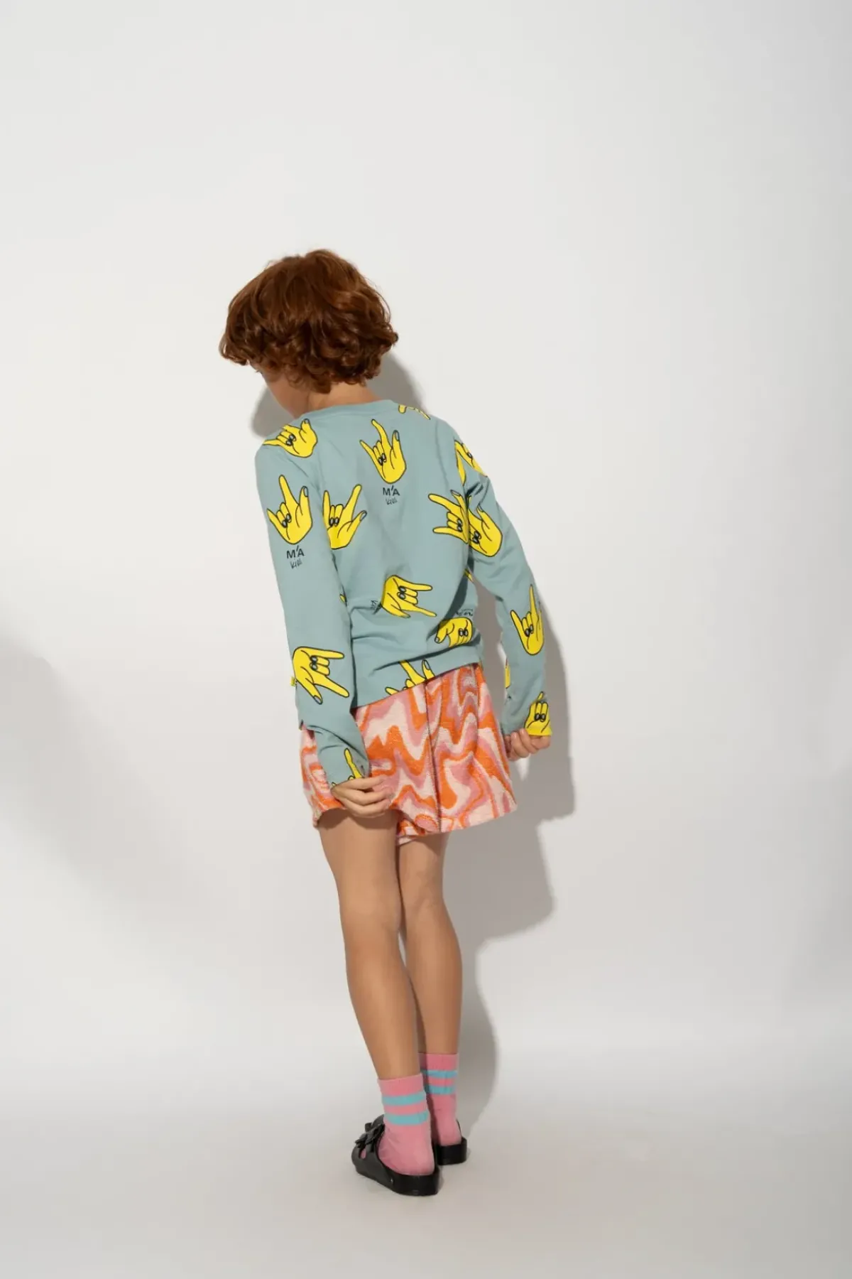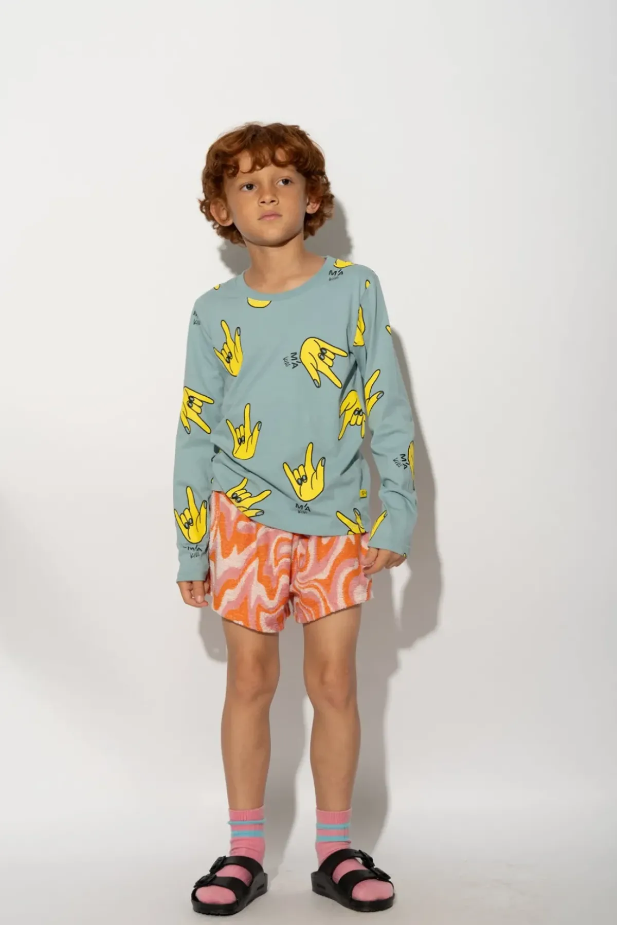 Get your kid looking cool with this all over hands printed jersey top. They'll love the round neck and long sleeves for comfort – now they'll never want to take it off!