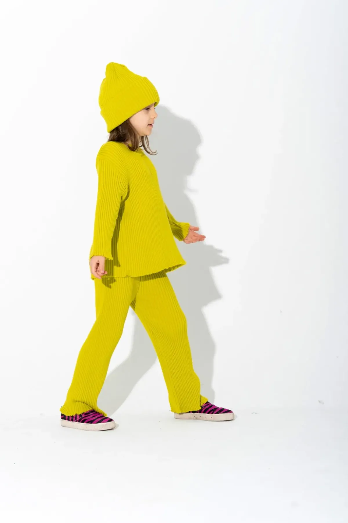 Stylish merino wool trousers featuring a drawstring fastening and fashionable raw hem, perfect for kids!
