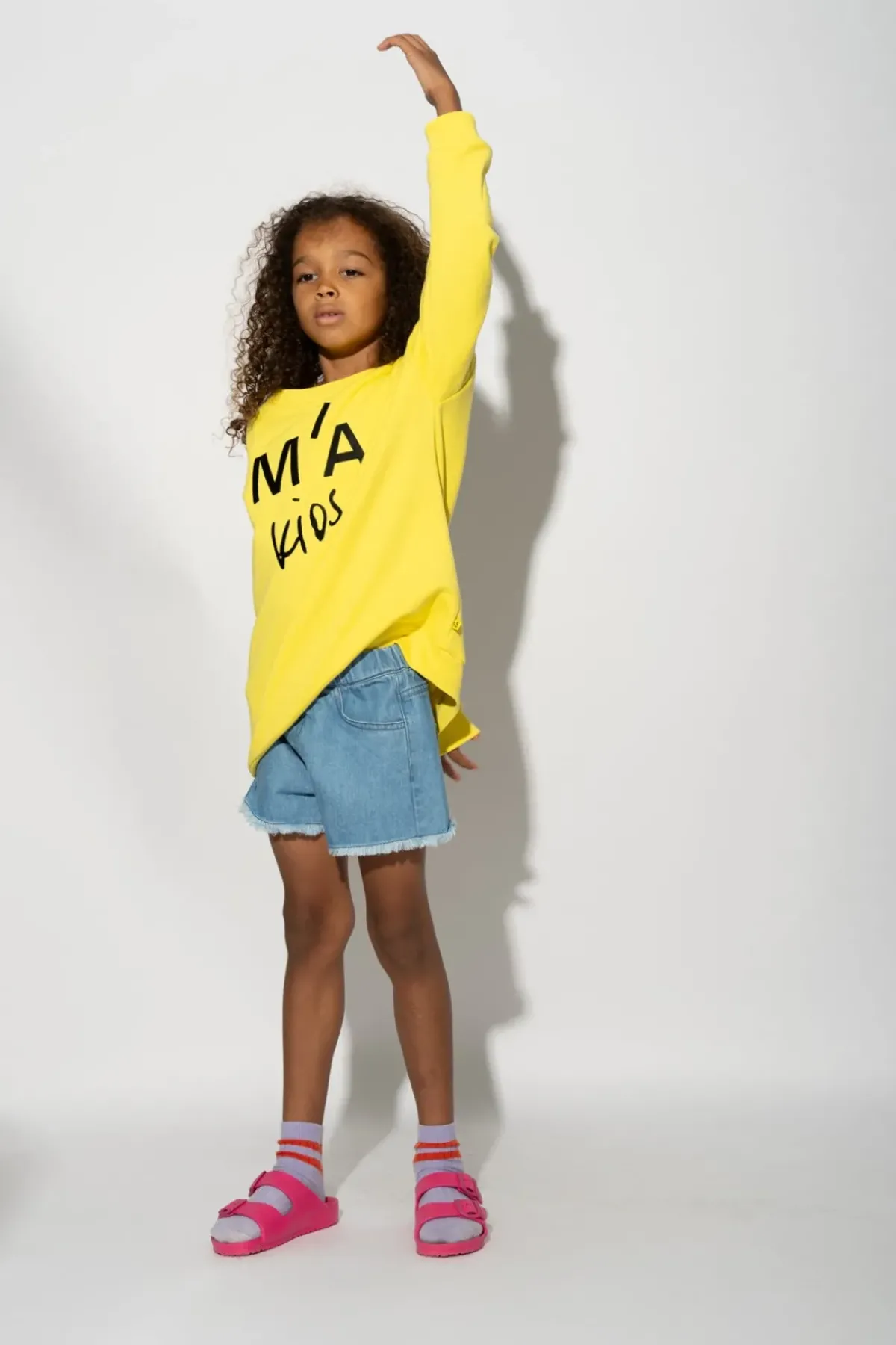 Our yellow sweatshirt is perfect for your little one! With a soft fleece material, long sleeves and a classic round neckline, they'll never want to take it off. Plus, the fun black M'A Kids logo on the front adds a touch of style and personality.