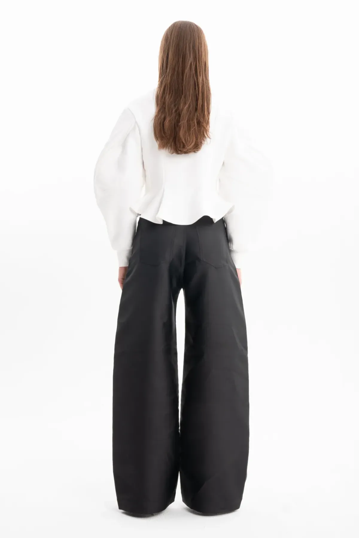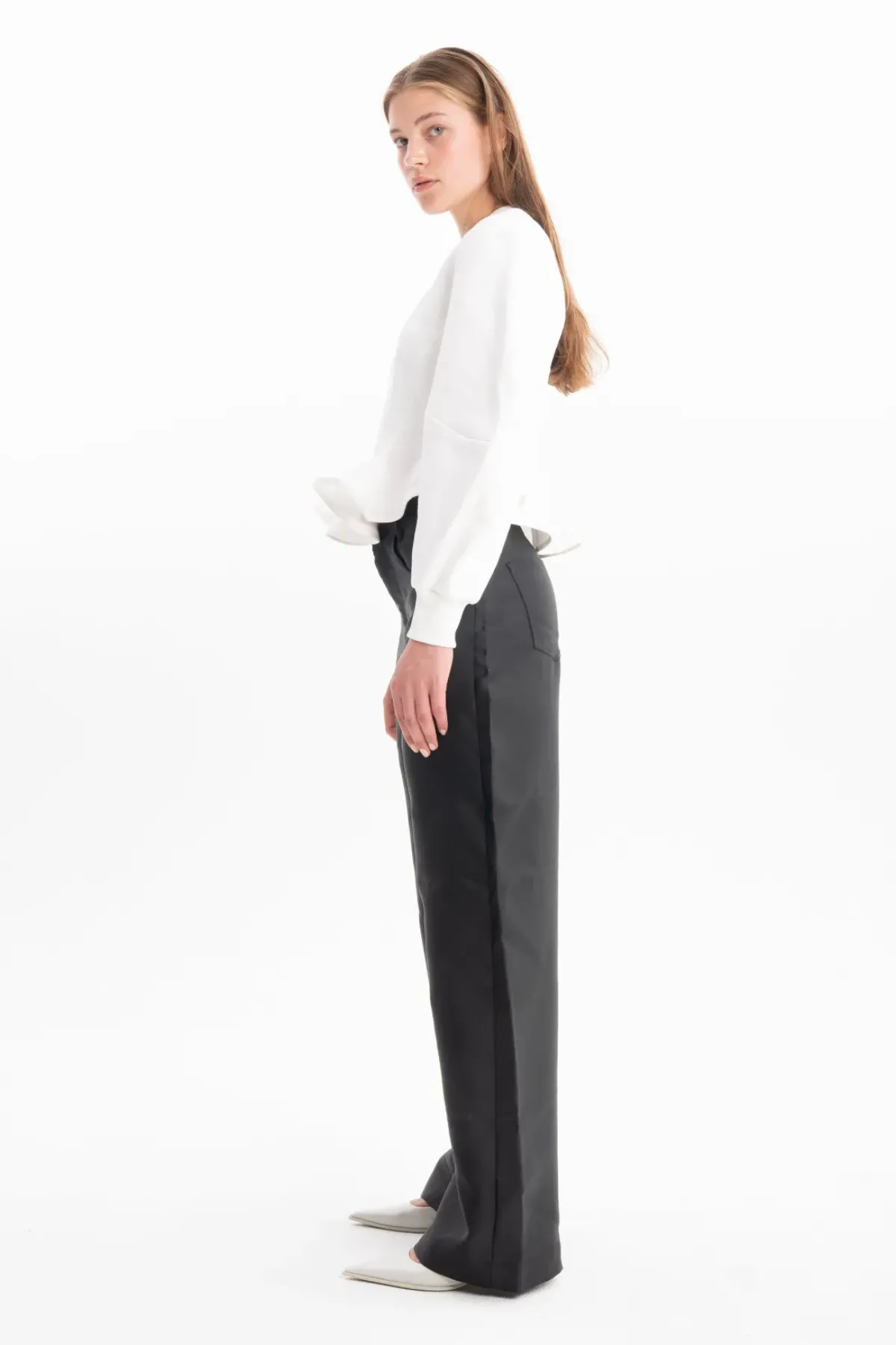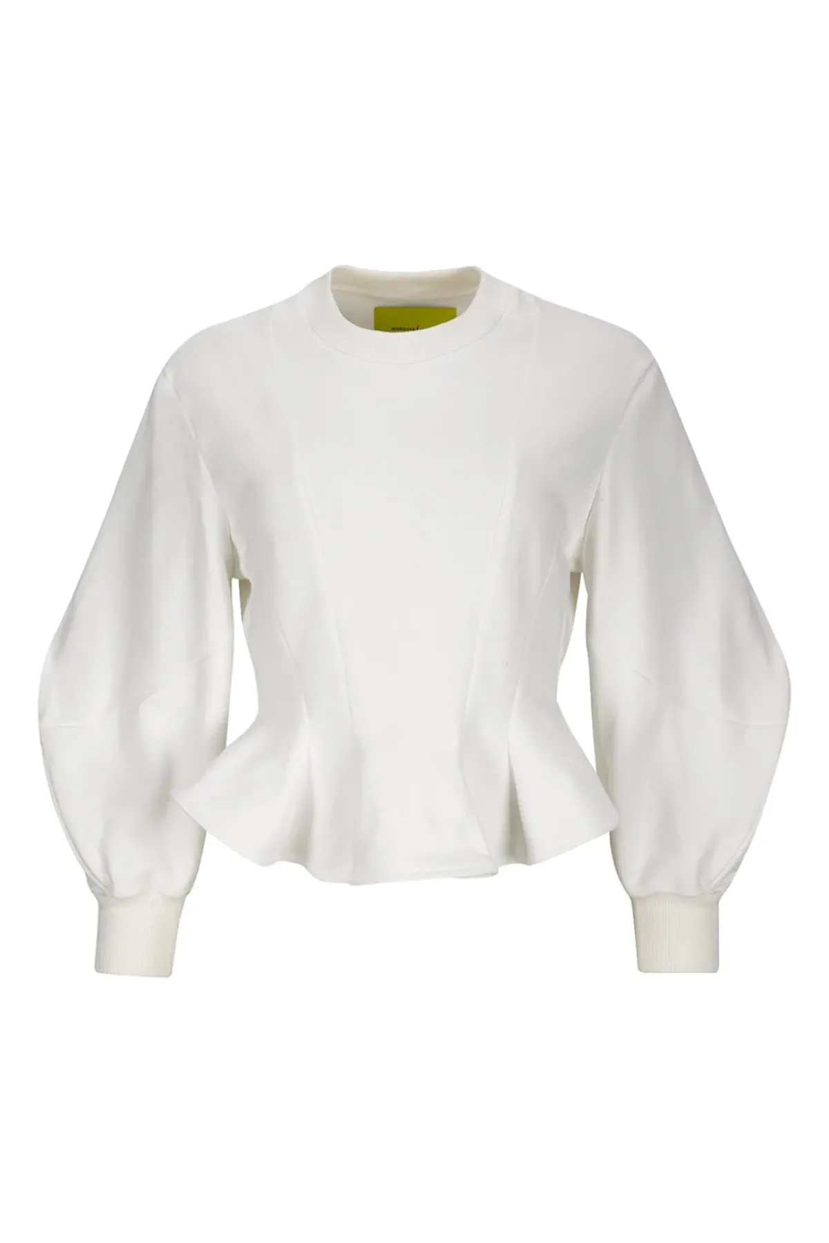 Experience the ultimate comfort and style with our white frill hem sweatshirt. Its balloon sleeves add a touch of playfulness, while the ribbed neck and cuffs provide a perfect fit.