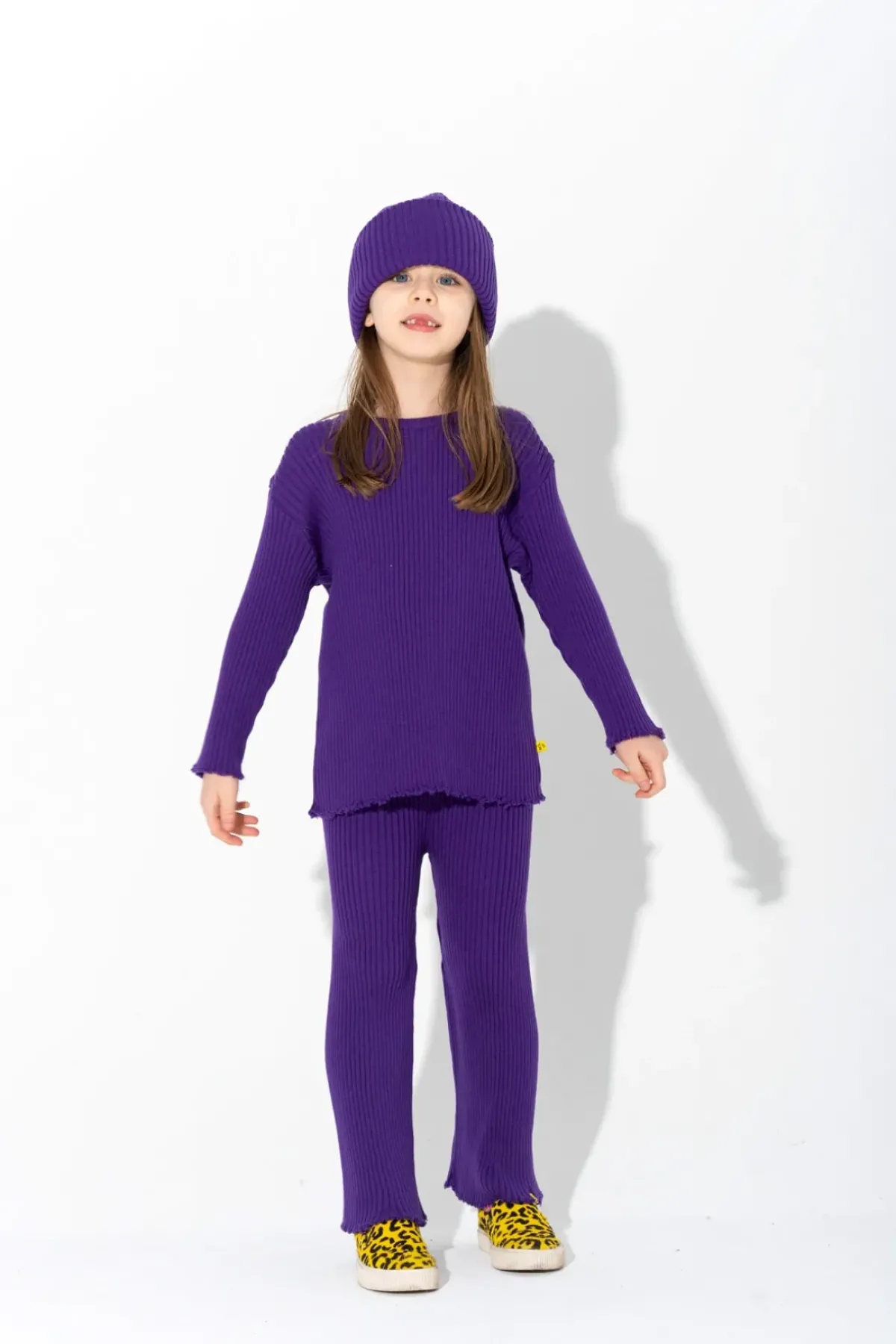 This purple merino knit jumper's ready for a kid takeover! It's got a crew neck and long sleeves – perfect for the stylish mini in your life.