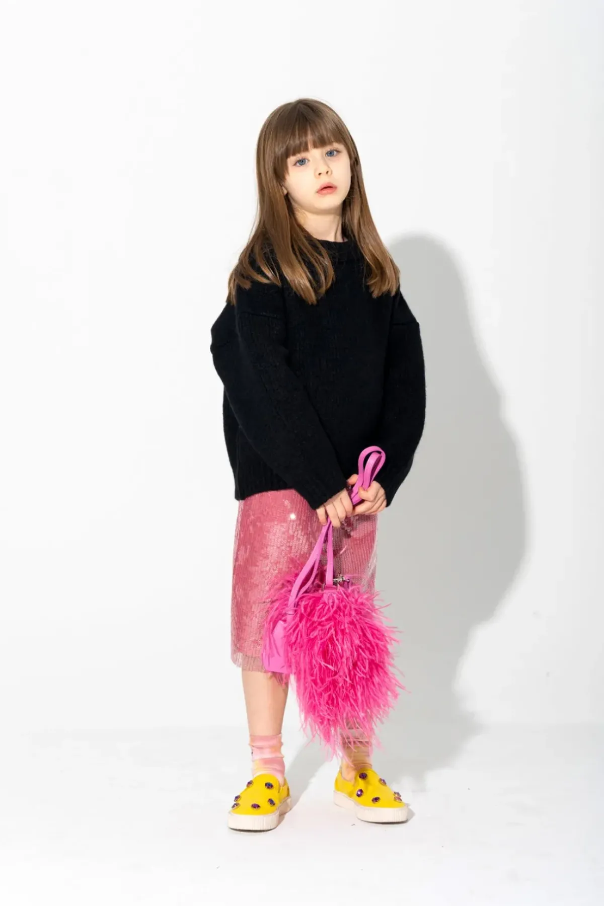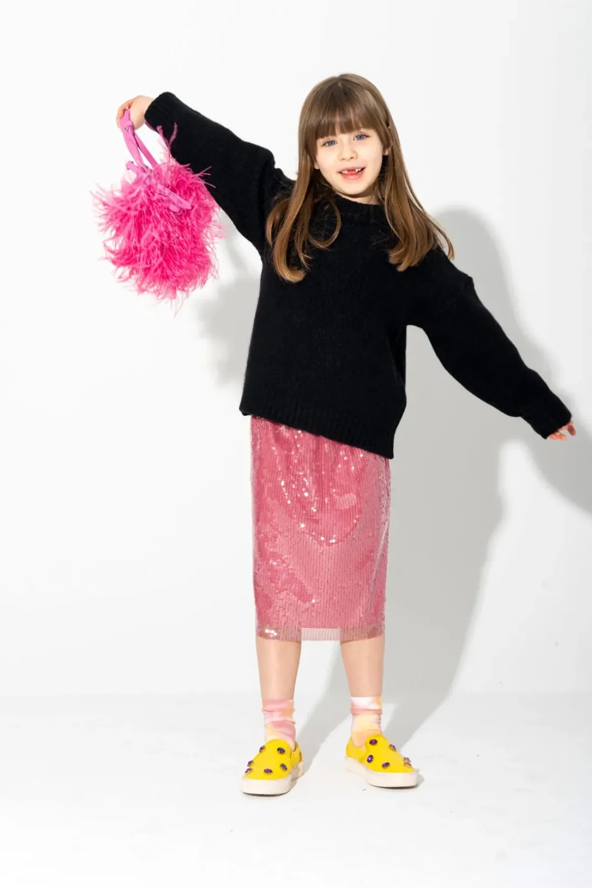 Time to twinkle and sparkle with this midi skirt in pink sequins!