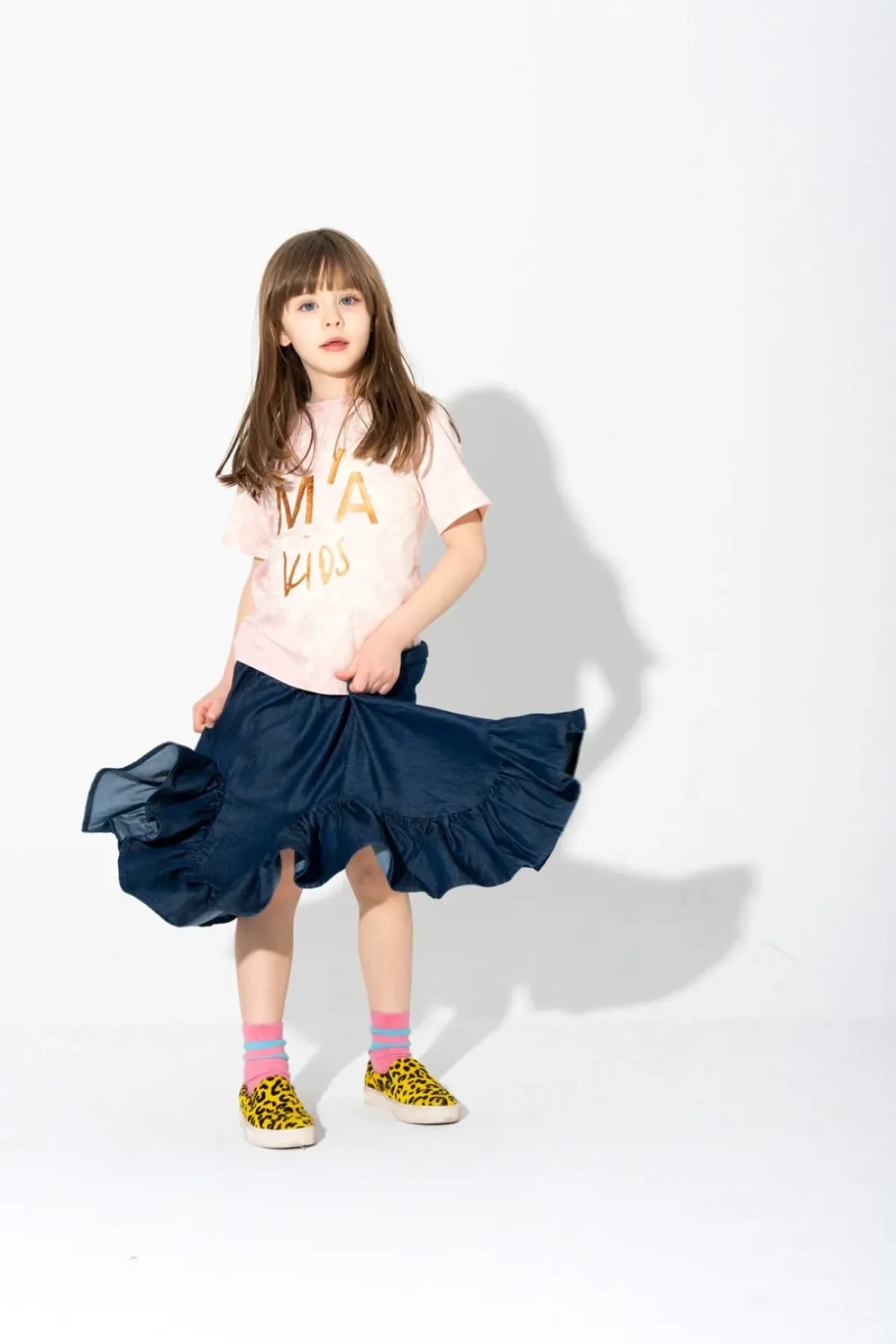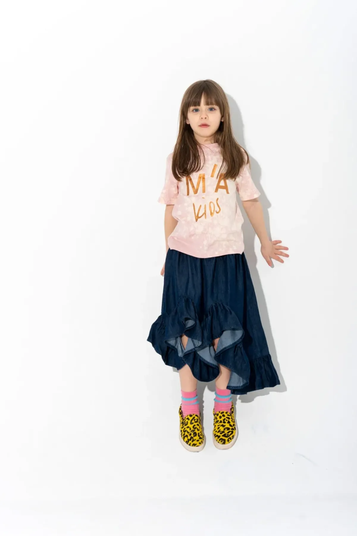 Embroidered with a bold logo and designed with a round neck, our pink and beige splattered jersey tee is sure to make a splash in your kids playground!