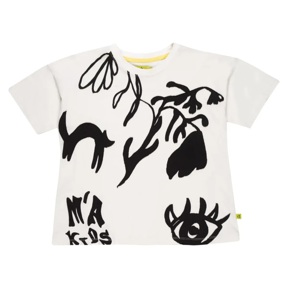Get your kiddo ready for a playful look with this white t-shirt featuring cool patch embroidery and a round neckline. Short sleeves keep it comfortable for everyday wear.