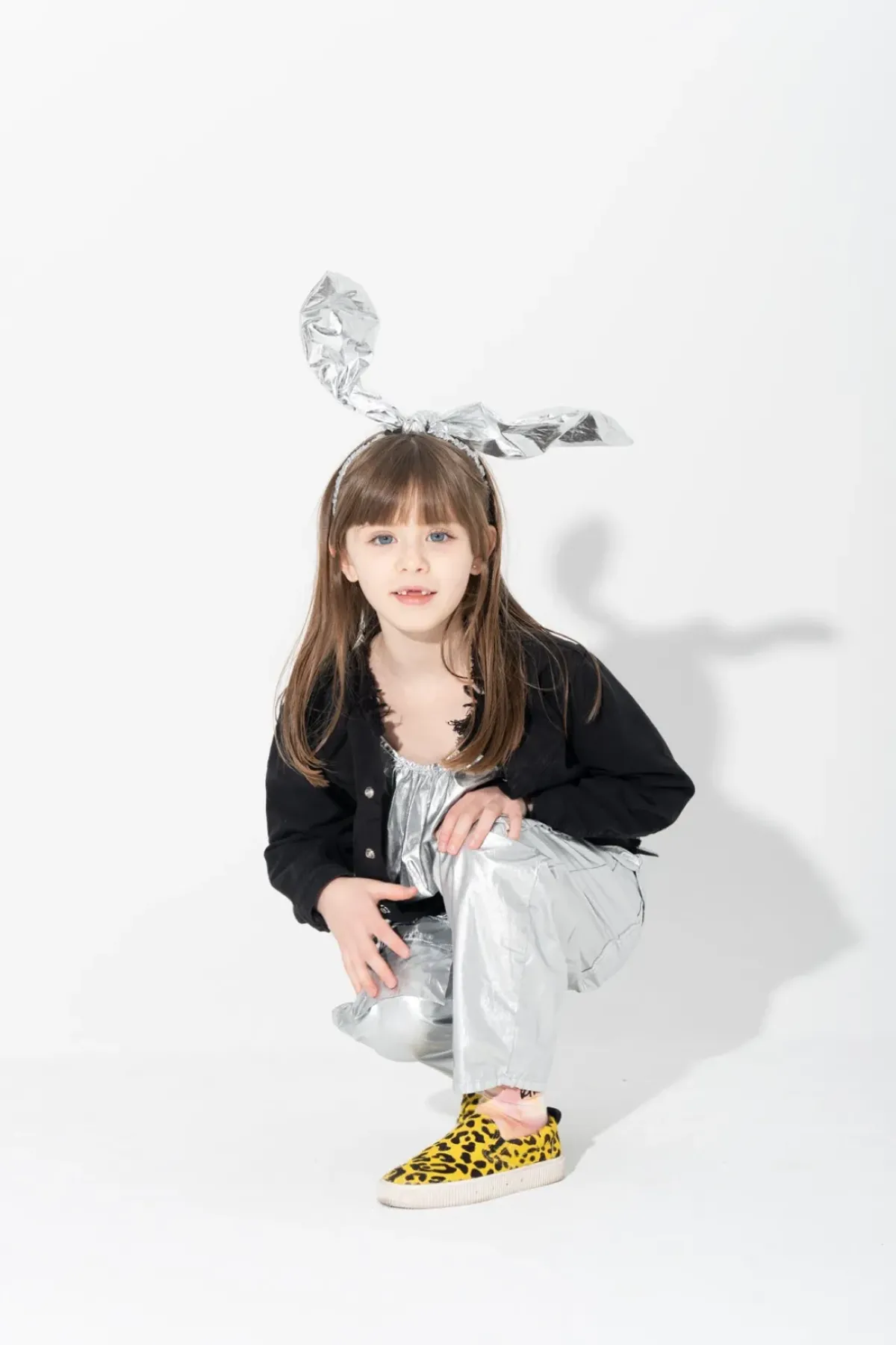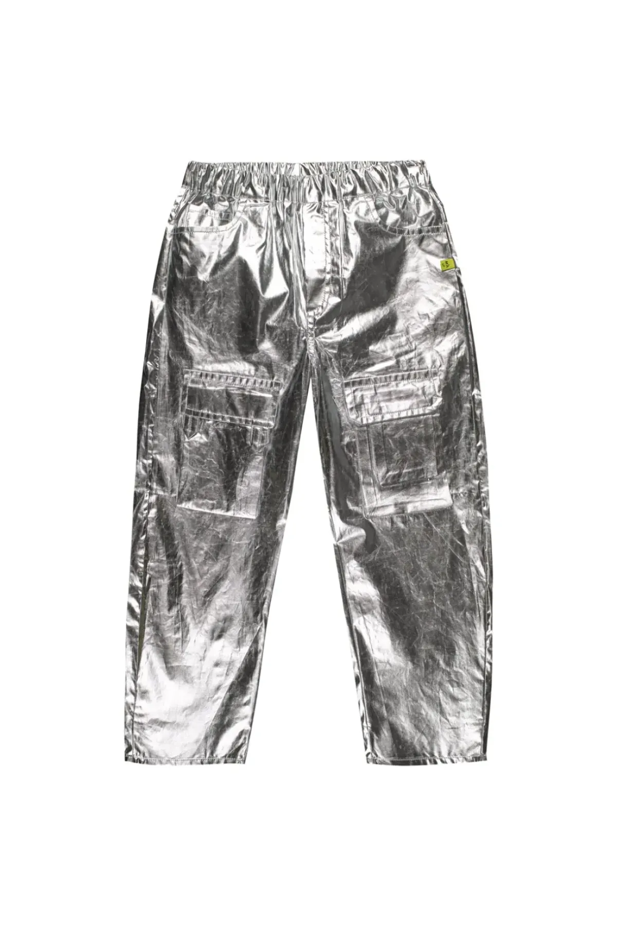Crafted from shirting with foil, these baggy jeans feature wide legs, an adjustable elastic waist and front pockets for a casual look.