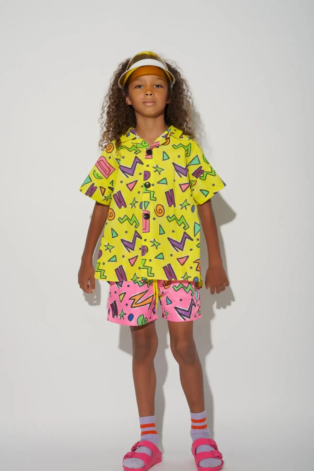 This shirt is the perfect mix of funky and functional for the little ones. With a colourful yellow design and playful squiggles, they'll love showing off their unique style. The short sleeves and convenient button-up front make it a breeze to wear for any activity.