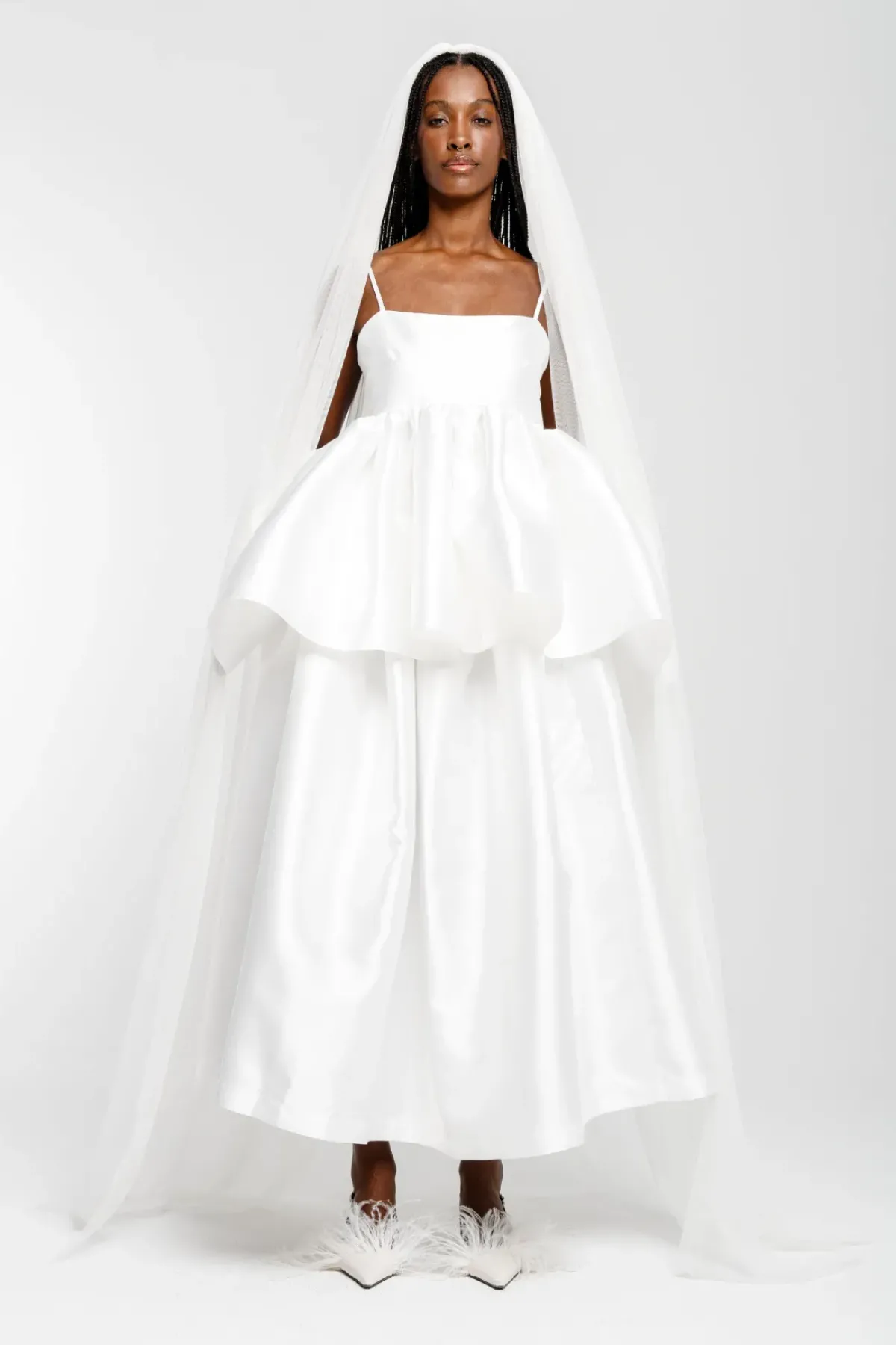 Prepare to make a statement and exude confidence in this opulent bridal collection white high waist pleated skirt. Crafted from sumptuous mikado, this skirt will elevate your look and ensure ultimate comfort on your spacial day.