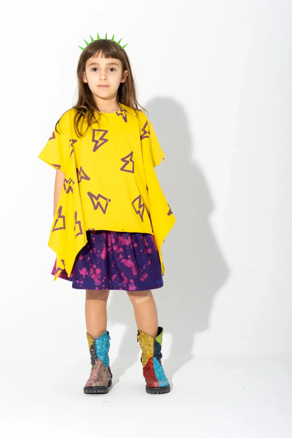 Rock this knee-length skirt for a fleecy-good time! The elastic waistband will make sure you’re comfy 'n' trendy in that purple and pink splatter-pattern.