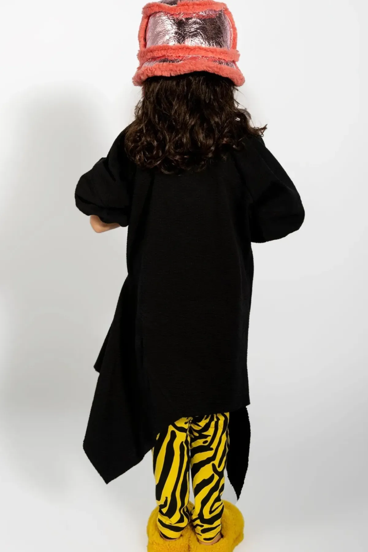 This kids' pink shiny leather bucket hat's so fly, it's got a topper of cozy wool!
