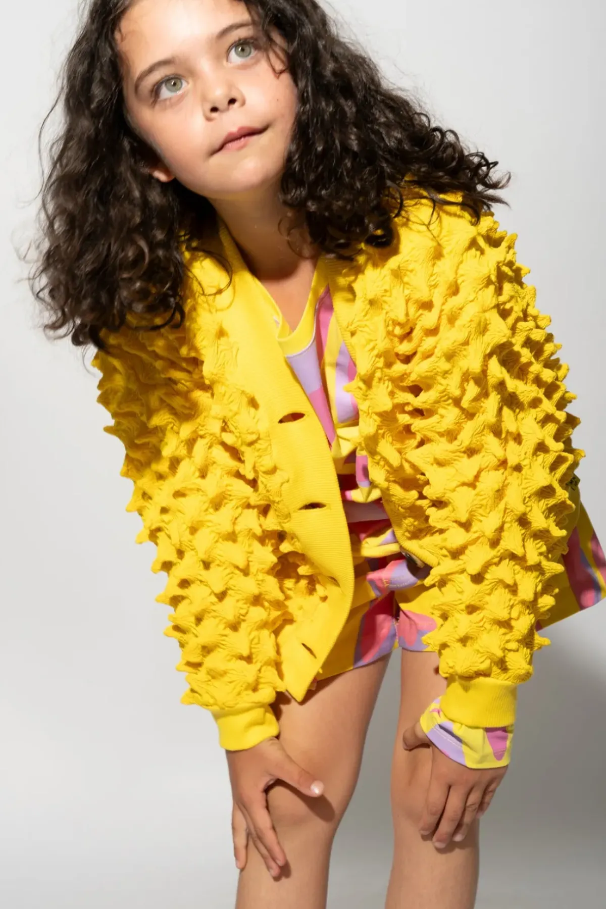 Ramp up the fun factor with this bright yellow spike cardigan! The embroidered shirting, long sleeves and front buttons make it a cool addition to any kid's wardrobe.