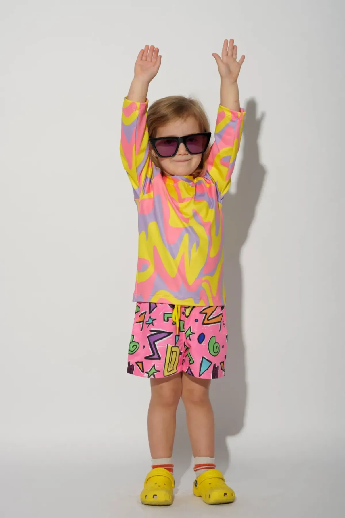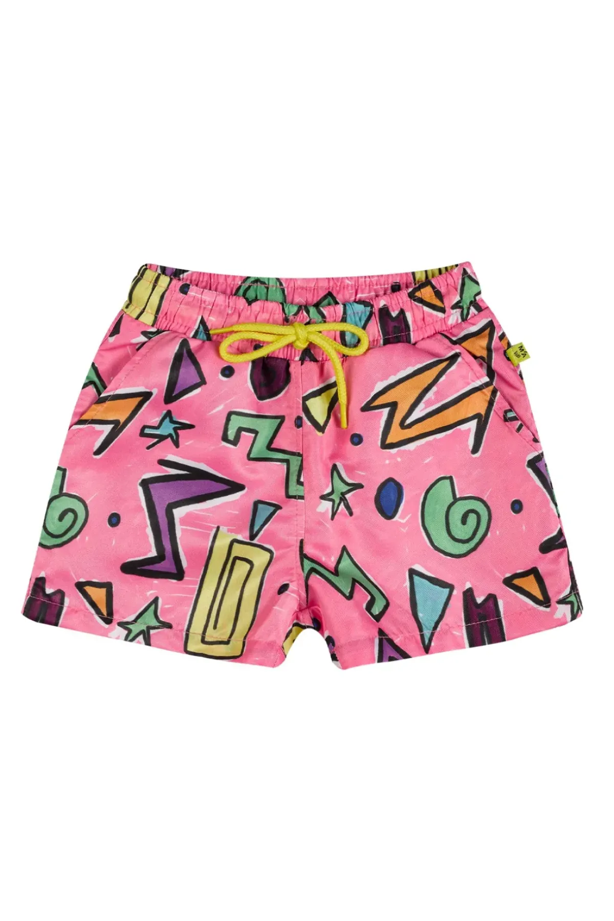 Make a splash in these playful pink print swimwear shorts, featuring a comfy elastic waistband – perfect for getting your kid on!