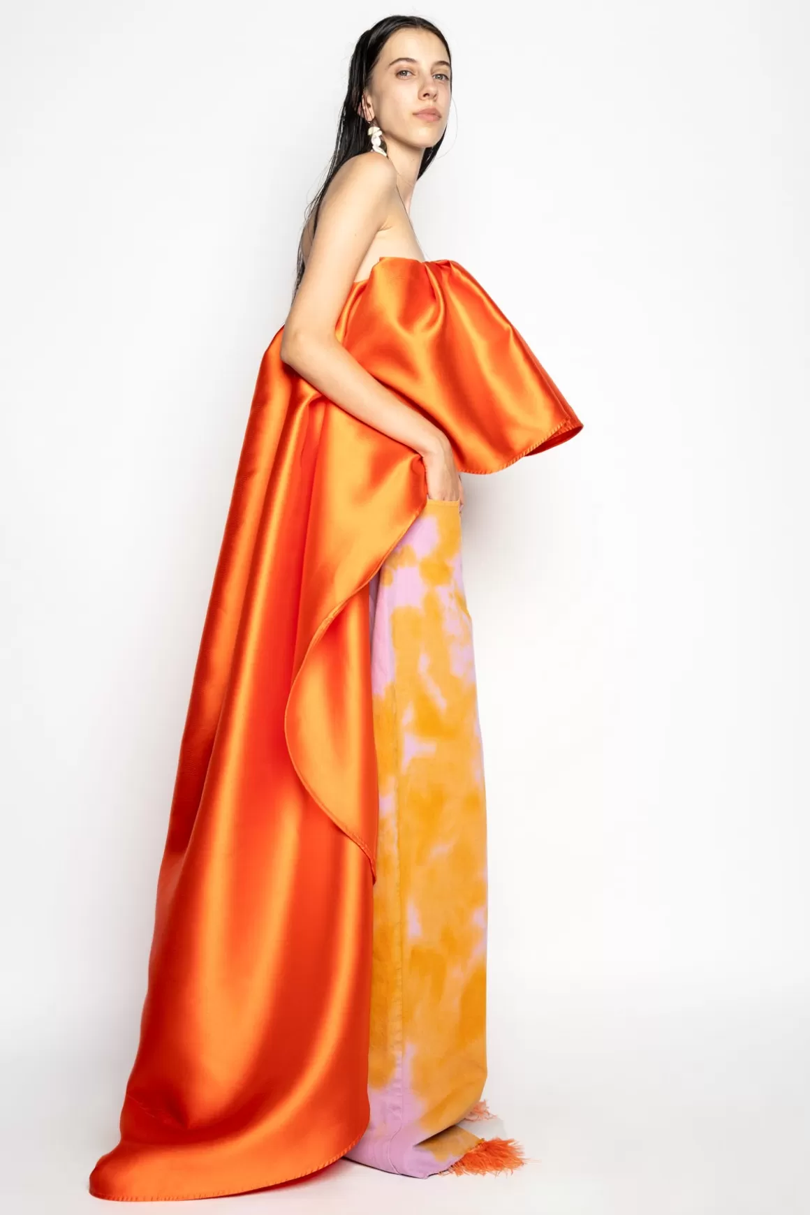 Be bold in these M'A 5-pocket boyfriend jeans in cool orange and pink tie dye drill. These fashionable wide-leg trousers flaunt a comfortable fit with hight waist, as well as a raw hem.• Wide leg• 5 pockets• Raw hem• High waist